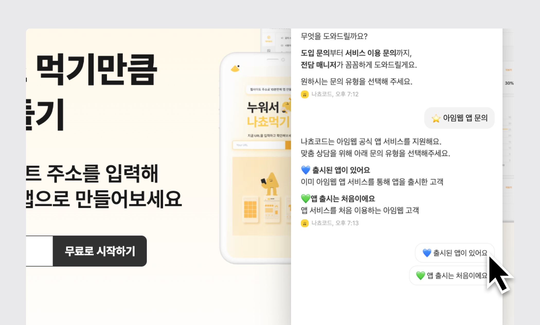 3단계) [아임웹 앱 문의] 클릭