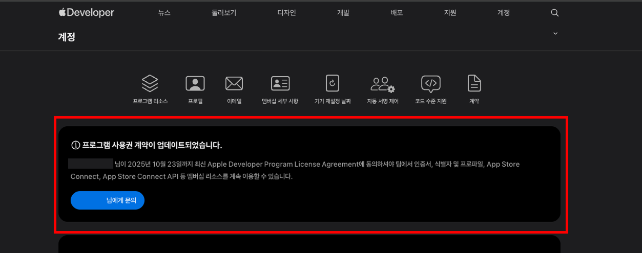 사용권 업데이트 : 프로그램 사용권 계약 경고가 떠있다면 반드시 업데이트 해주세요.