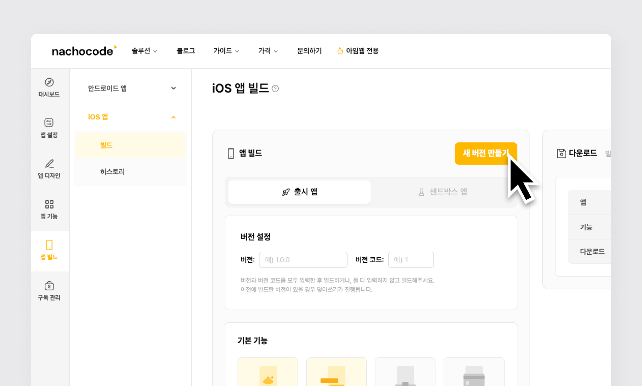 1단계) 앱 빌드 > iOS 앱 > [새 버전 만들기] 클릭