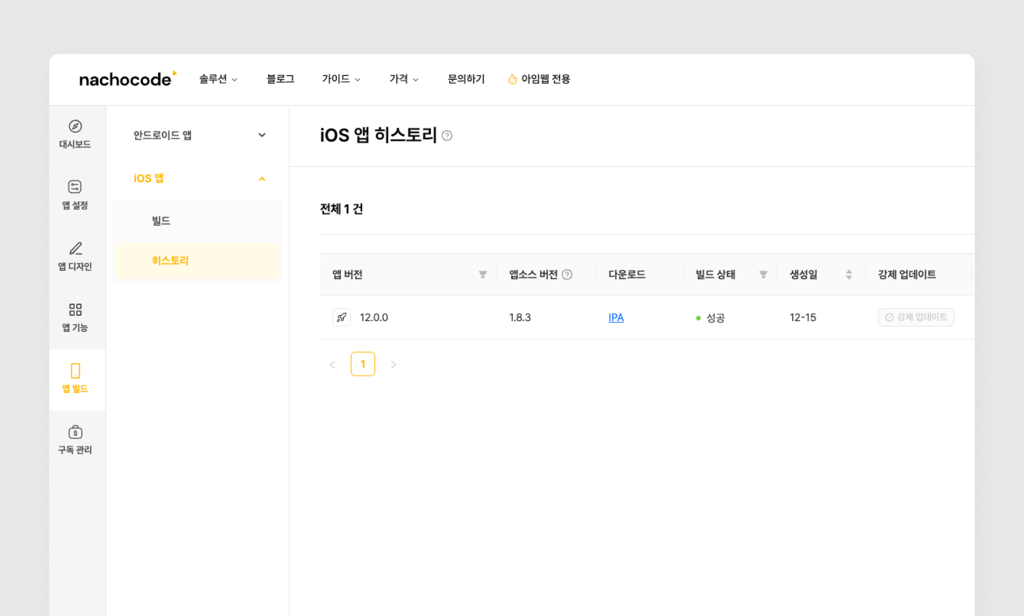 2단계) 앱 빌드 > iOS 앱 > 히스토리 빌드 성공 확인