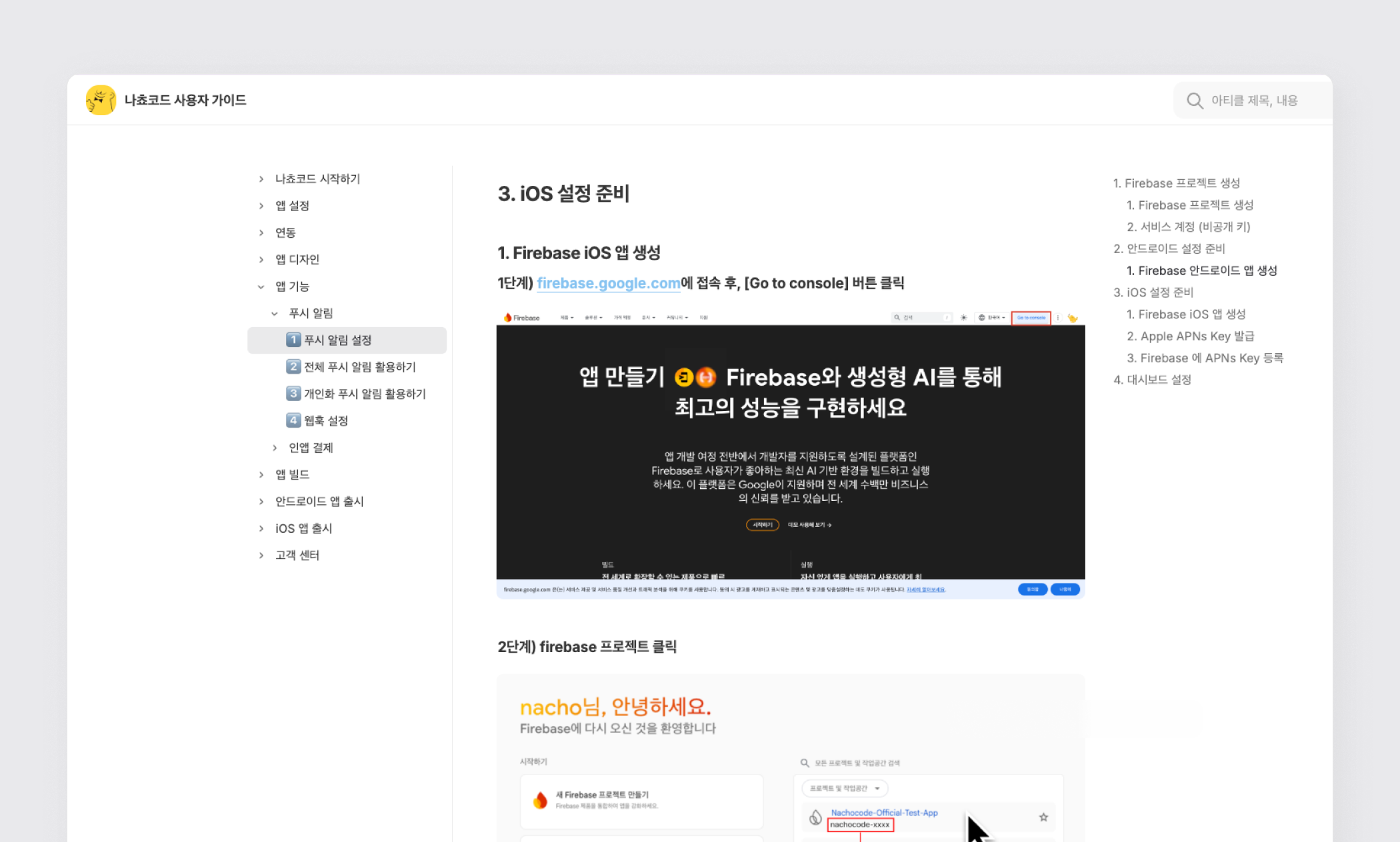 2단계) 아래 가이드를 따라 사용중인 프로젝트에 iOS 앱 생성 후 신규 파일 받기