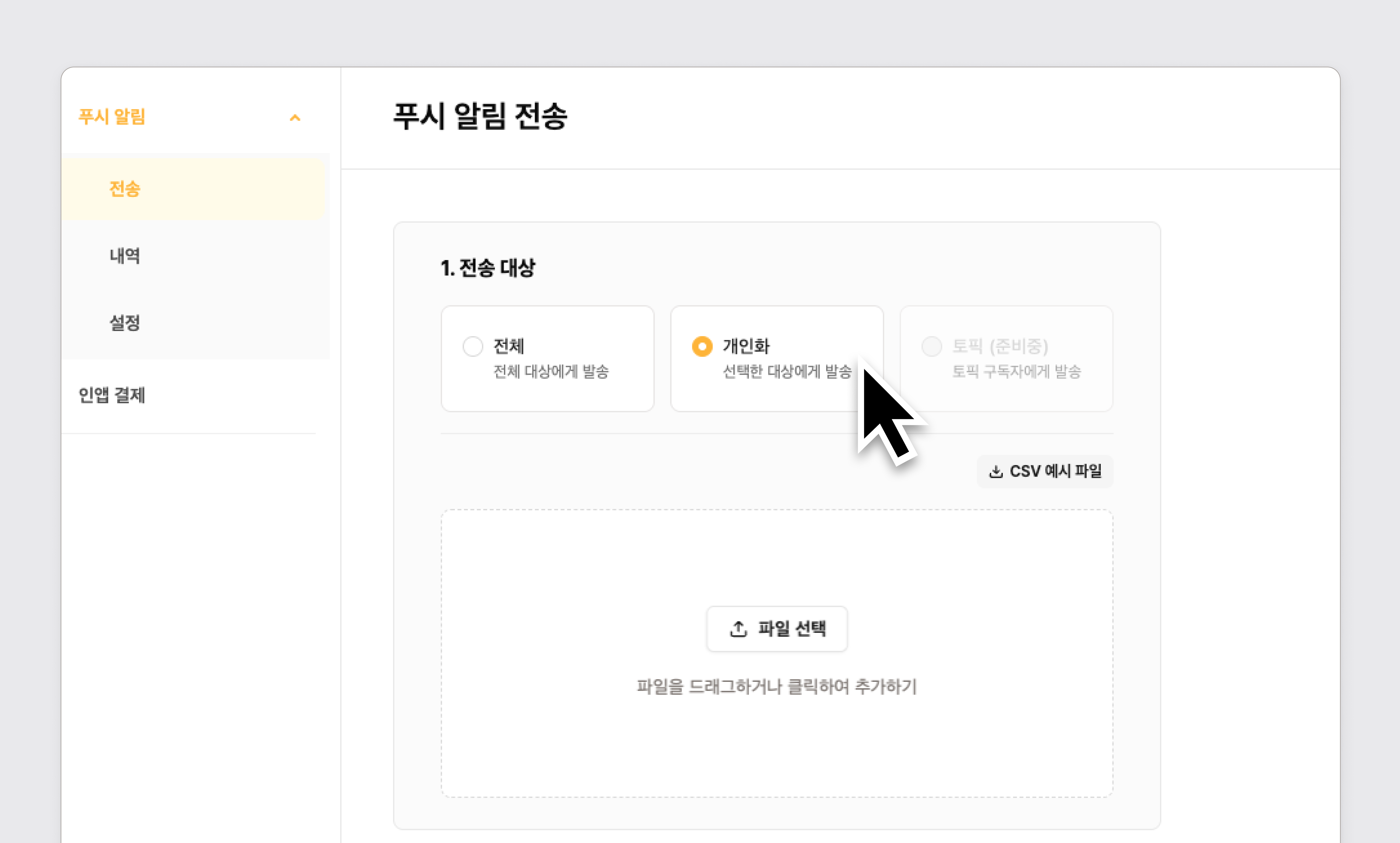 개인화 : 선택한 대상에게 푸시 알림 발송