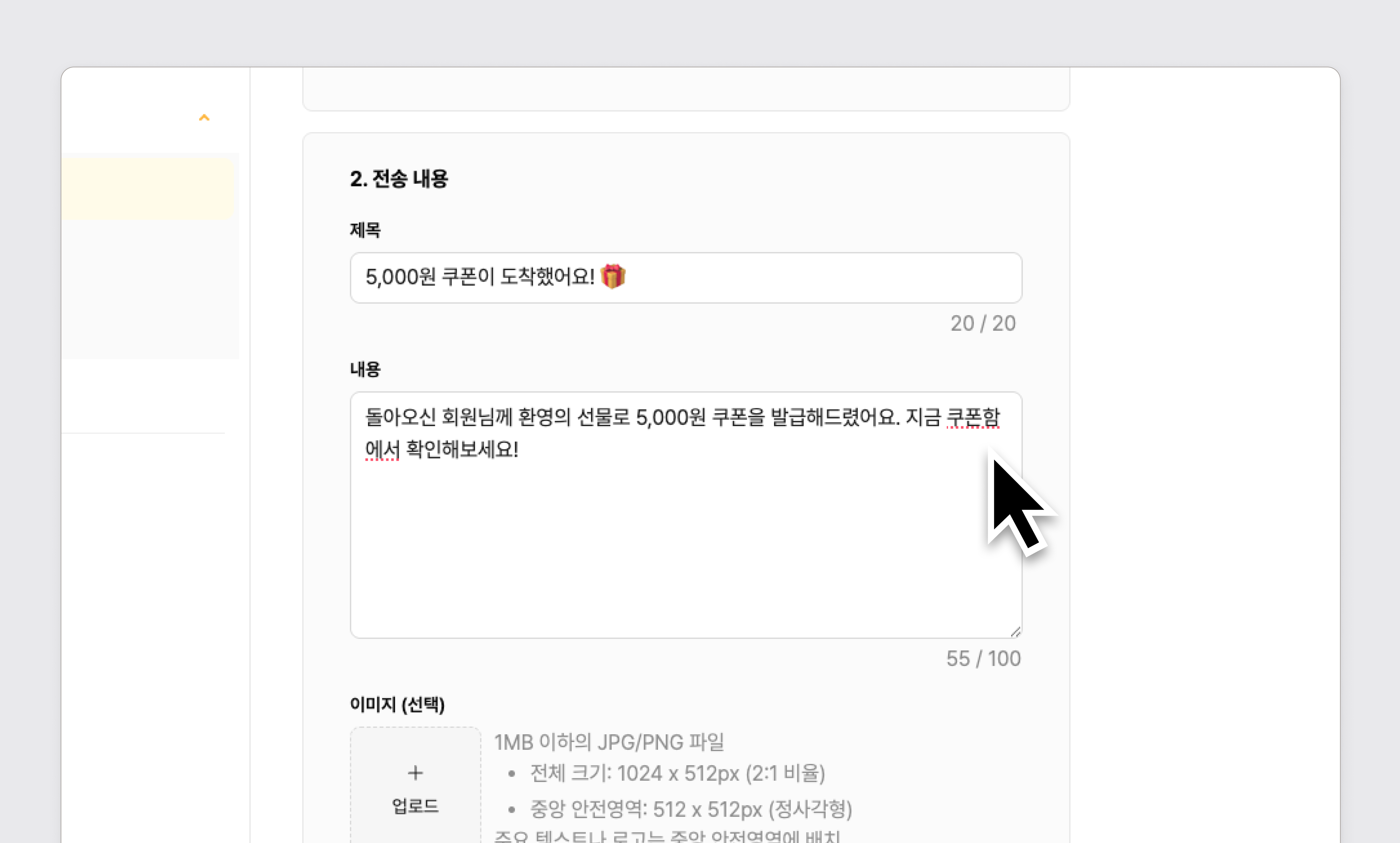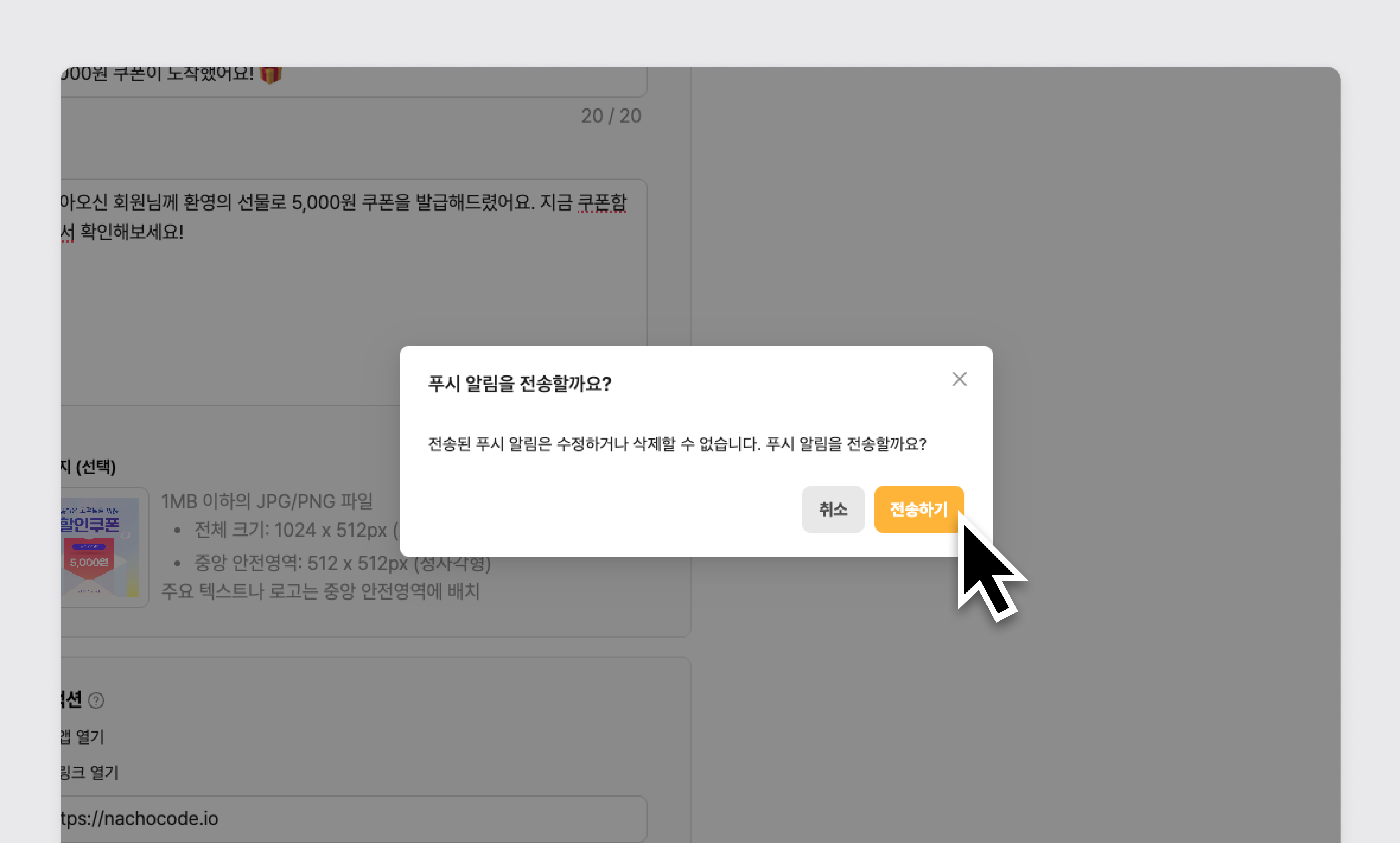 전송된 개인화 푸시는 수정하거나 삭제할 수 없습니다.