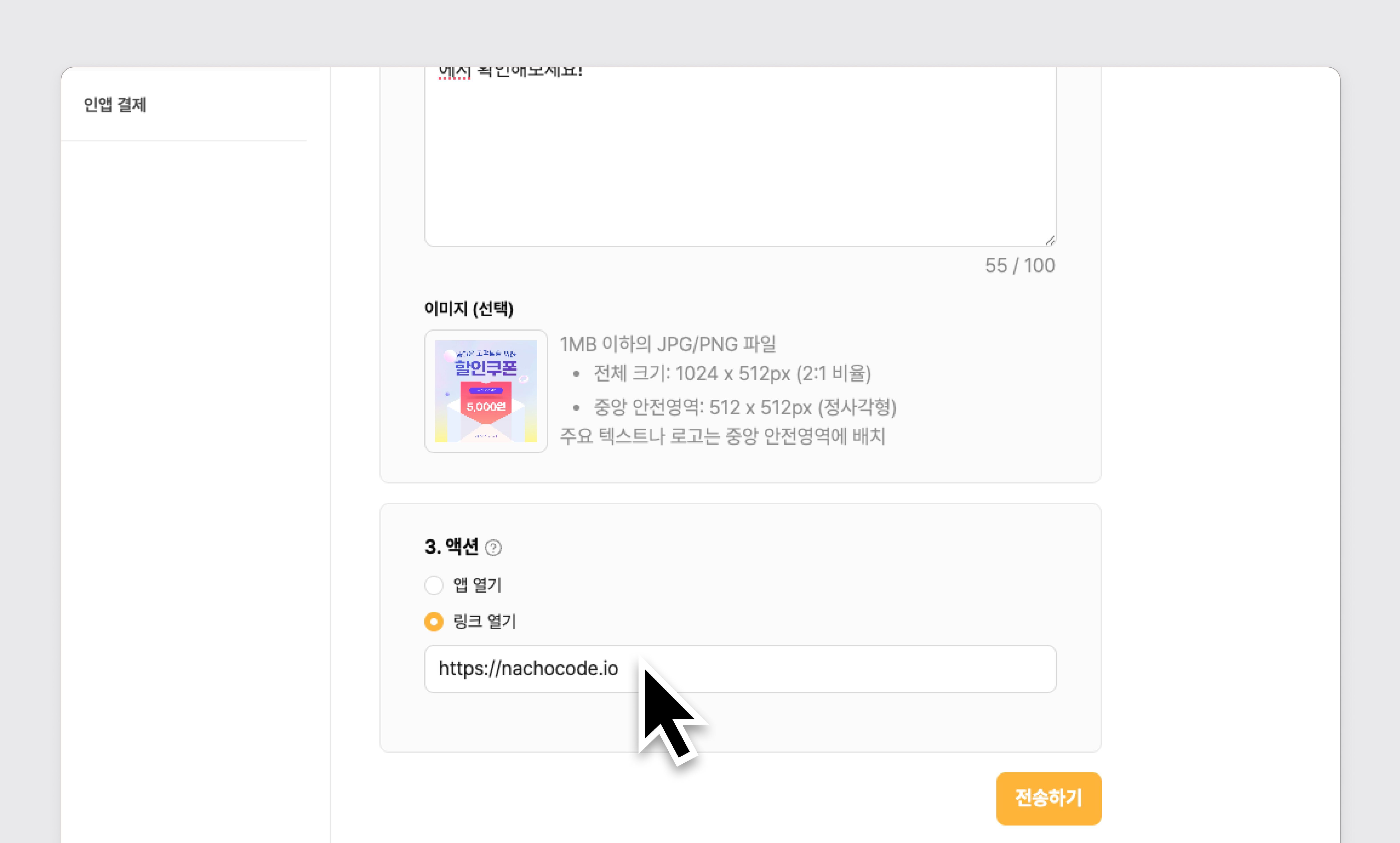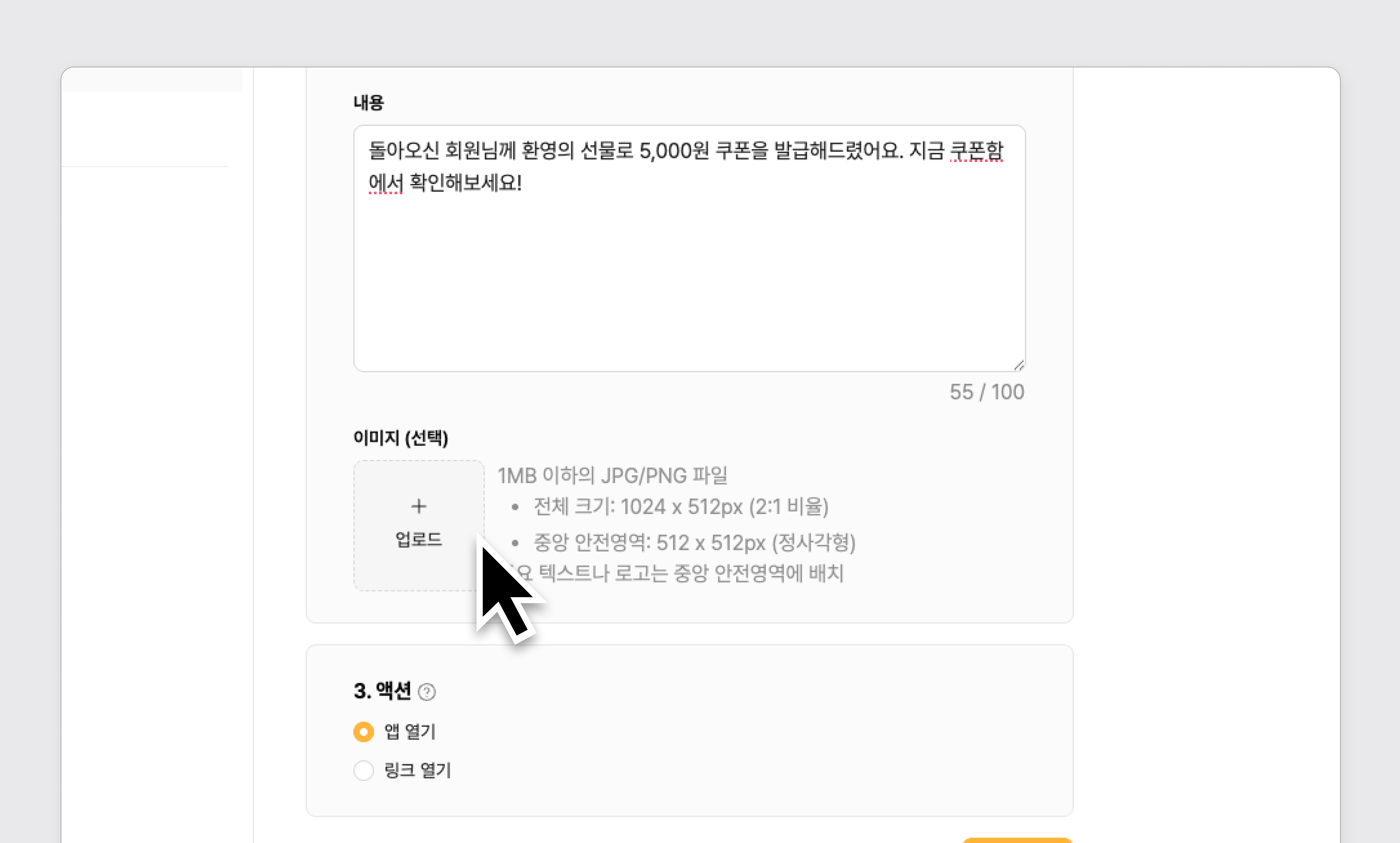 앱 열기 : 앱 열기를 유도하고 싶을 때 선택