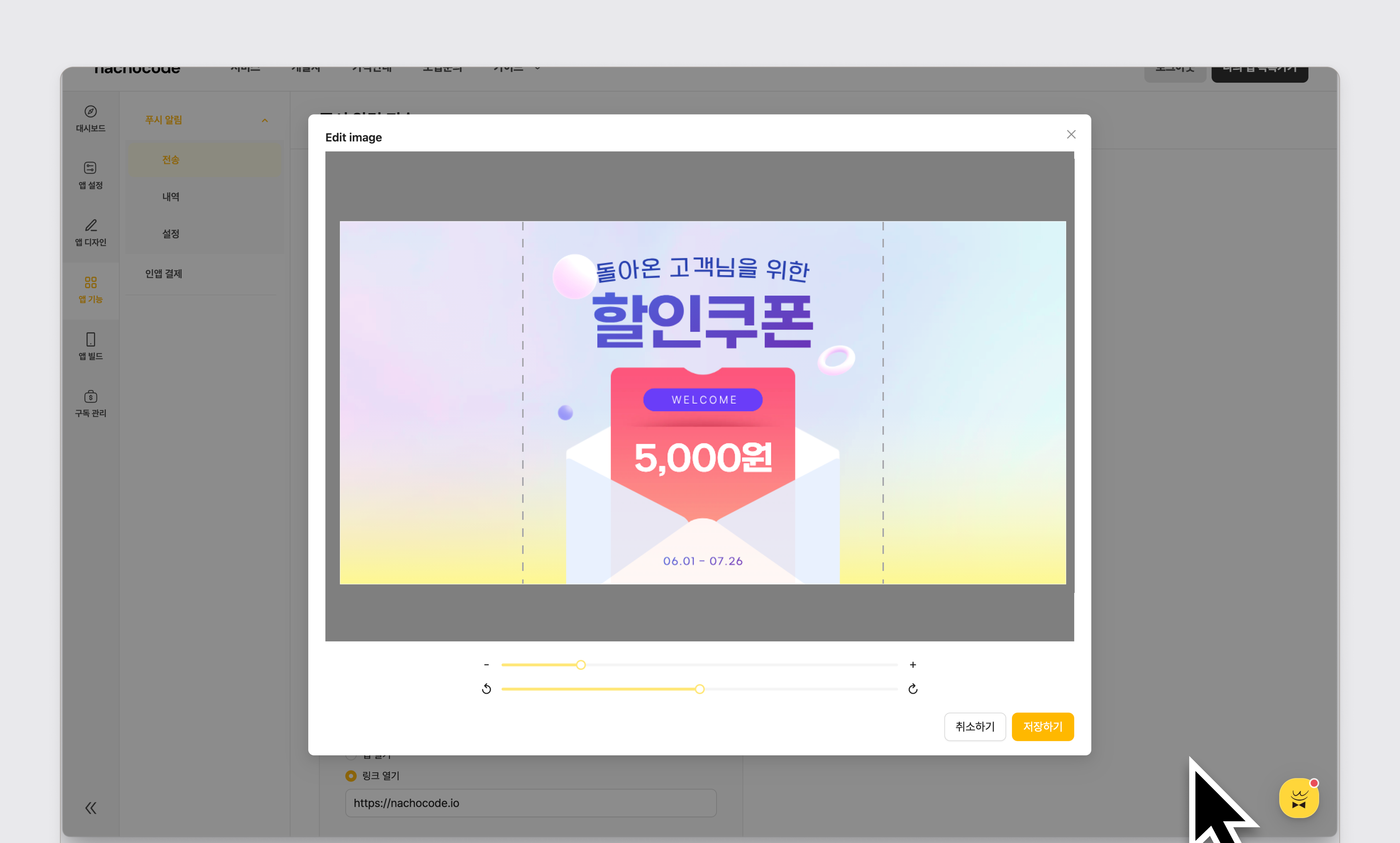 디바이스 별로 전송되는 이미지 형태가 다르므로, 반드시 주요 텍스트나 로고는 중앙 안전영역에 배치해주세요.