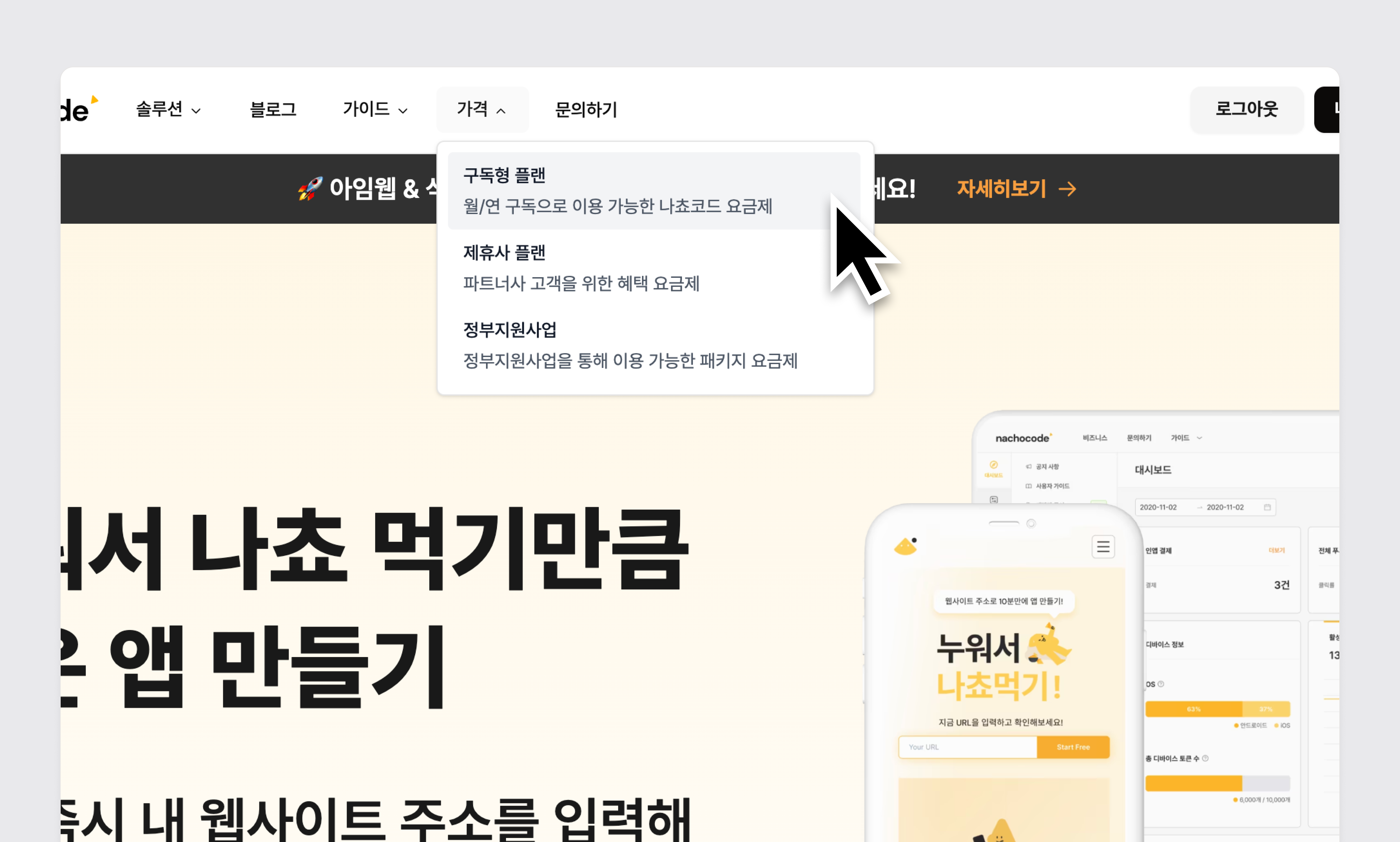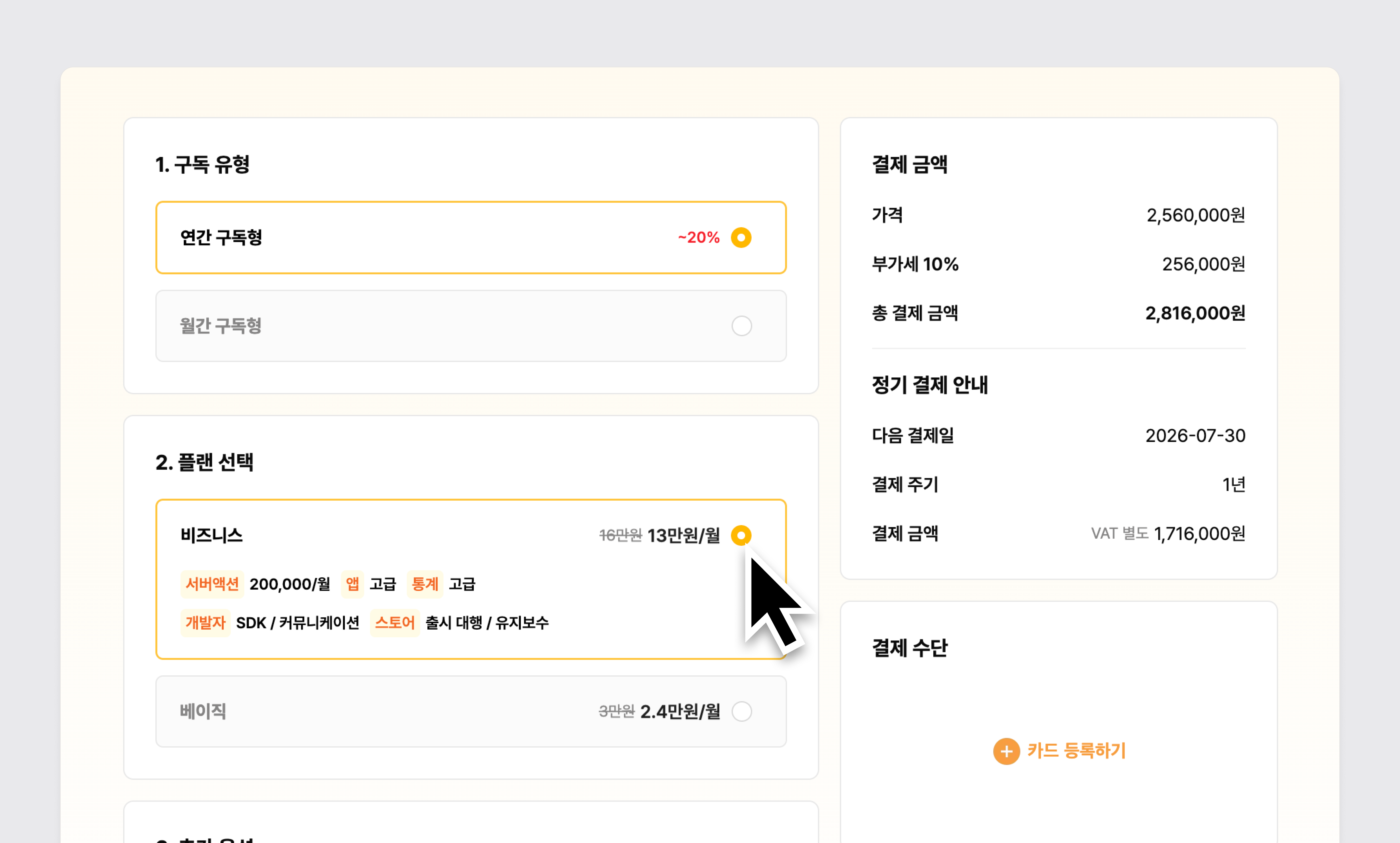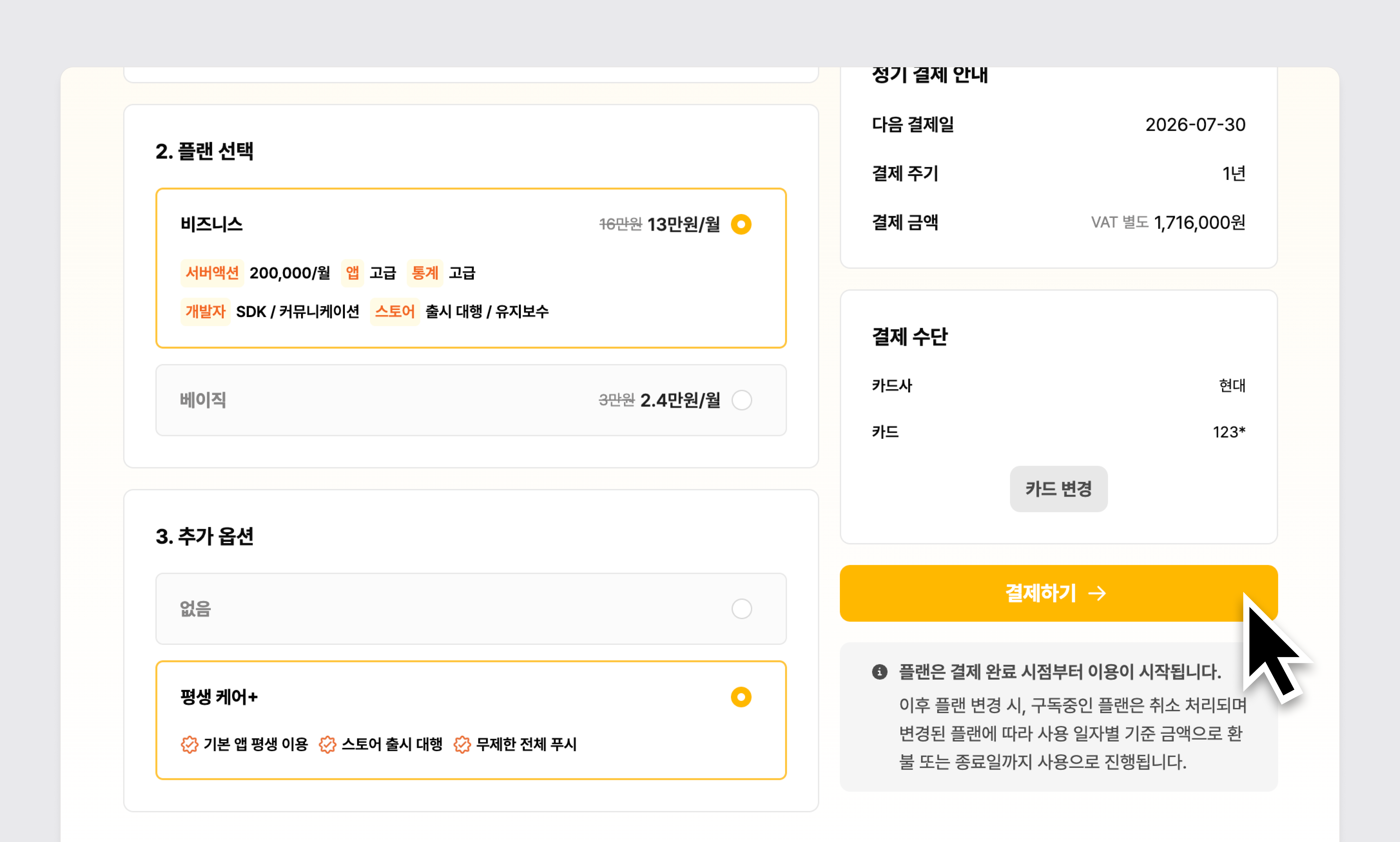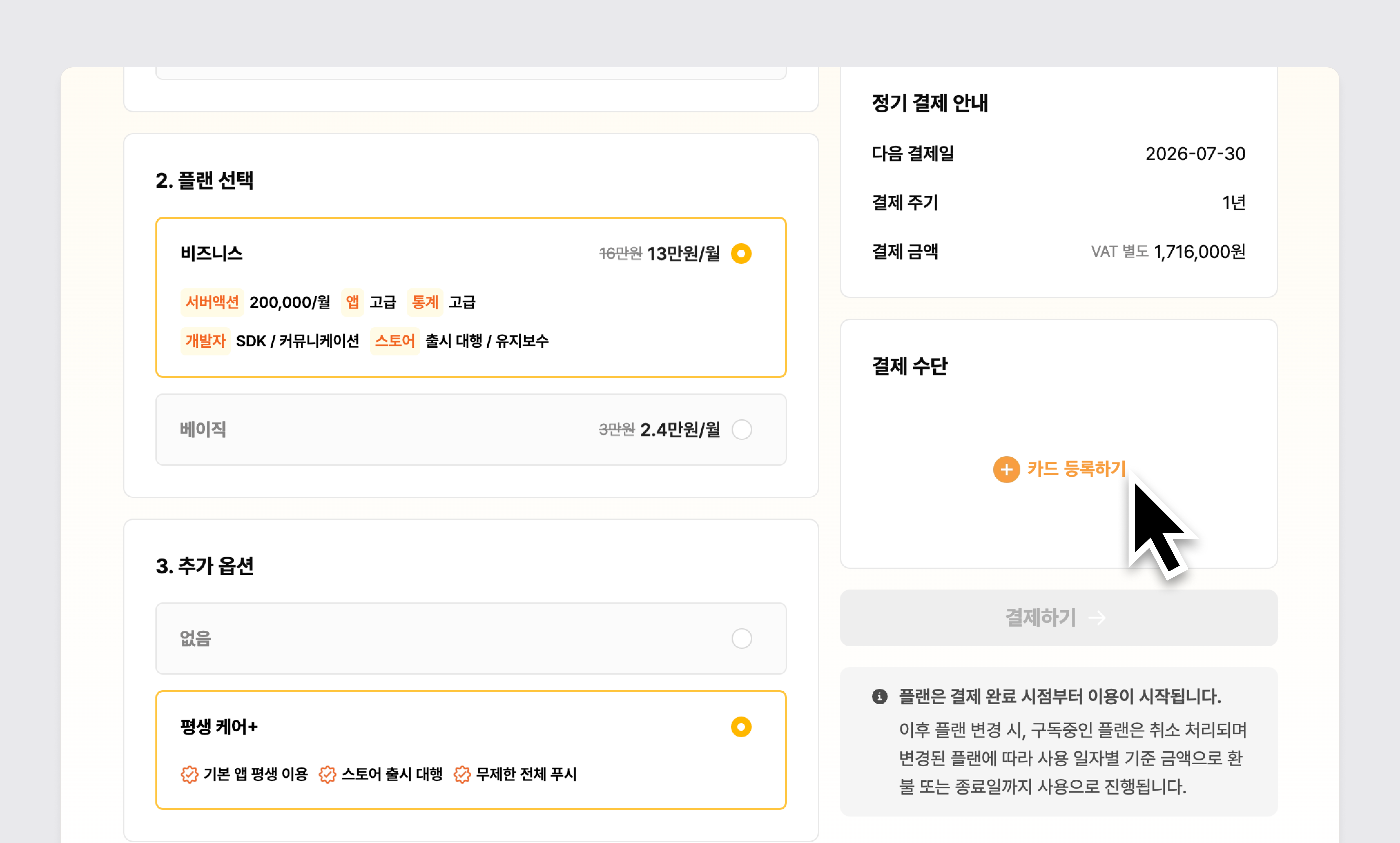 1단계) 홈페이지 > 가격 > 플랜 선택
