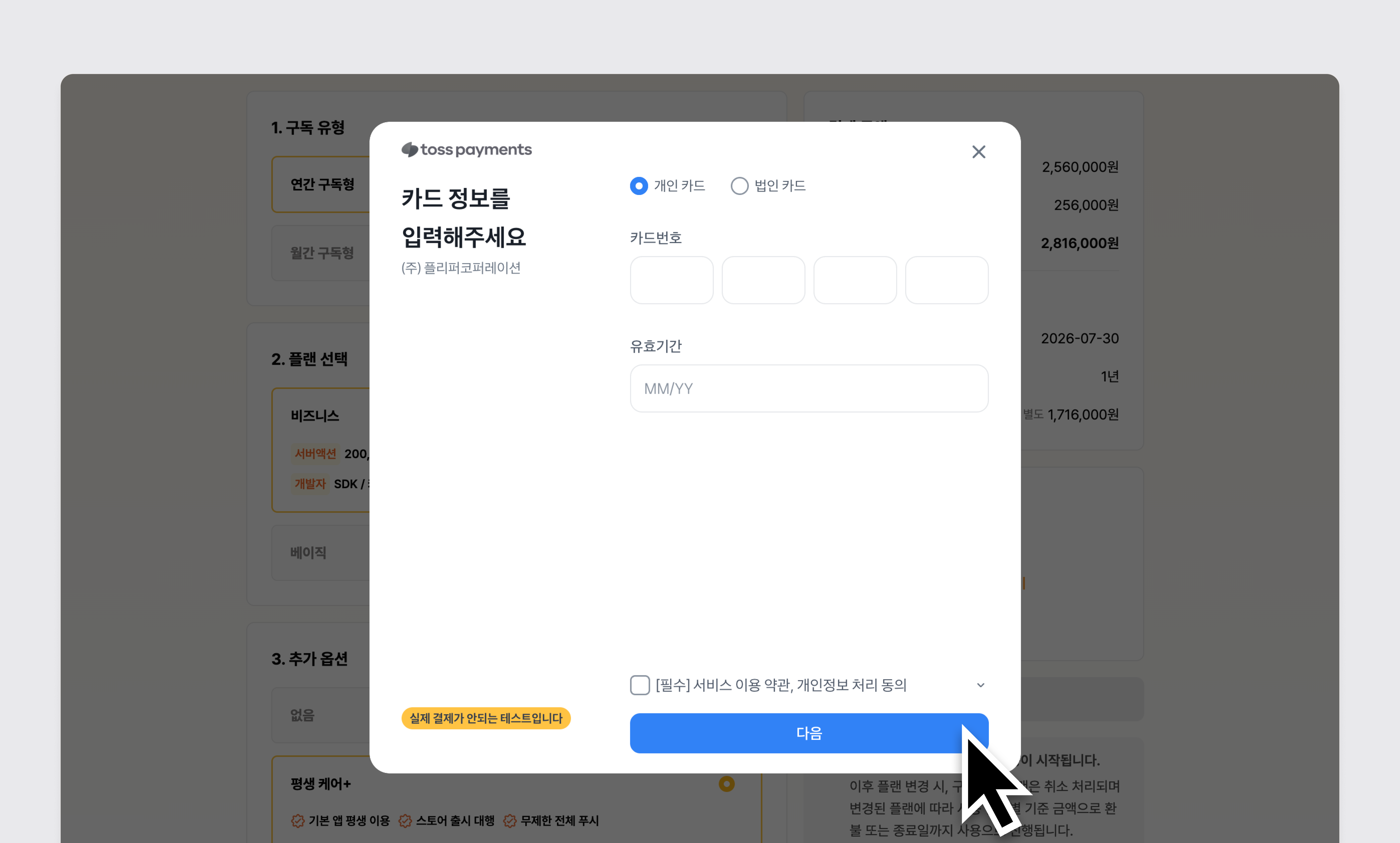 7단계) 카드 등록 완료 후 [결제하기→] 클릭