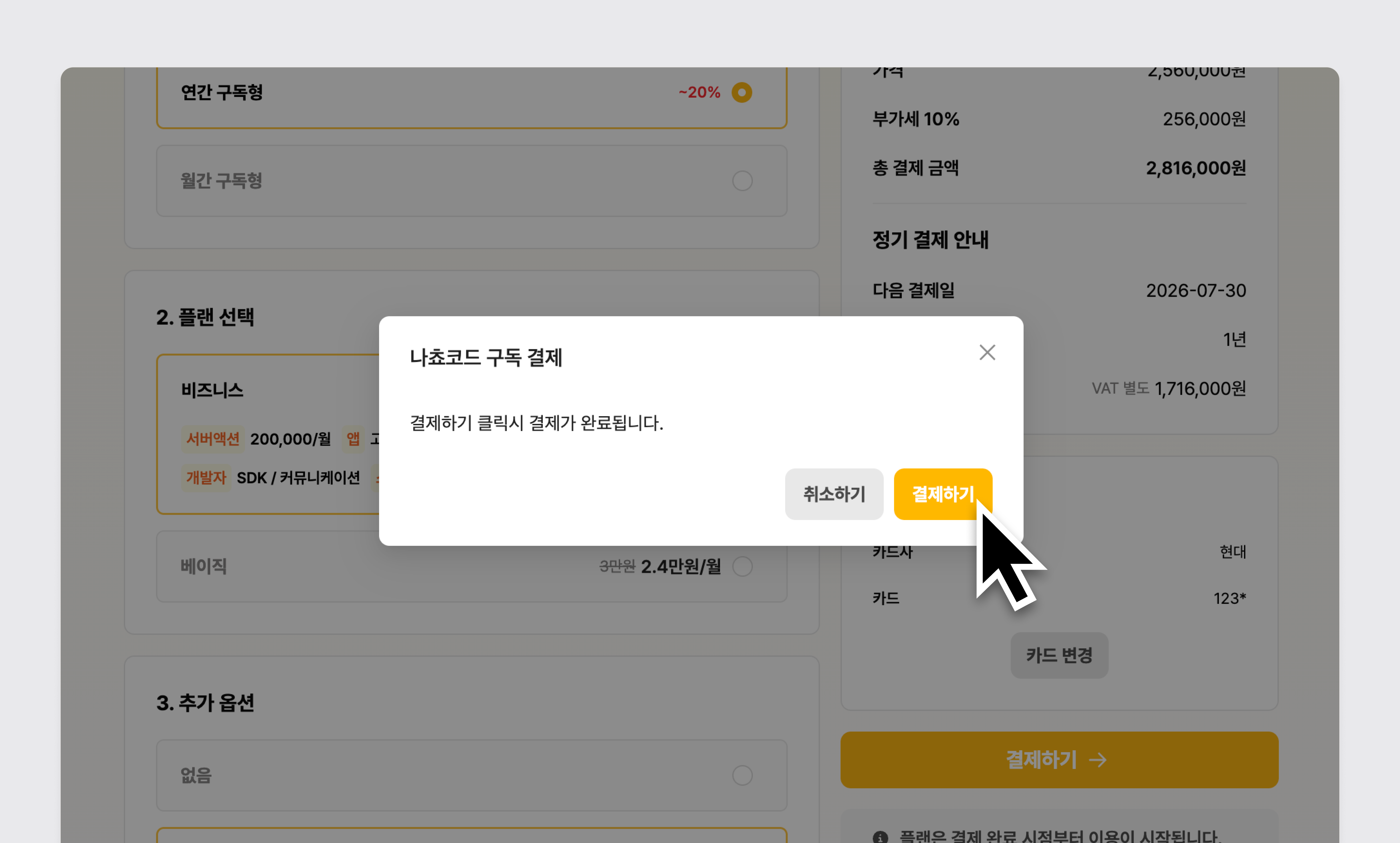 8단계) 나쵸코드 구독 결제 > [결제하기] 클릭