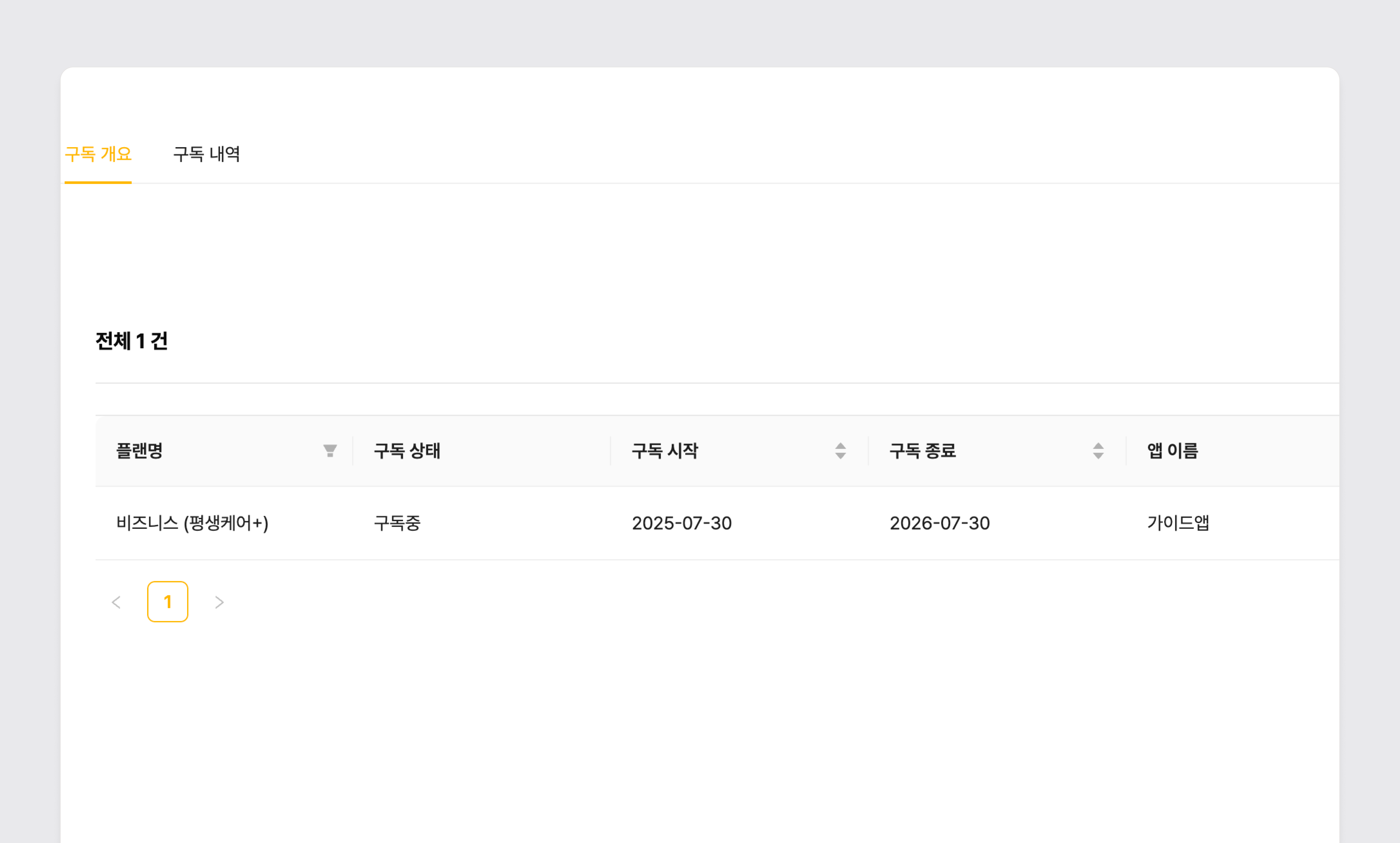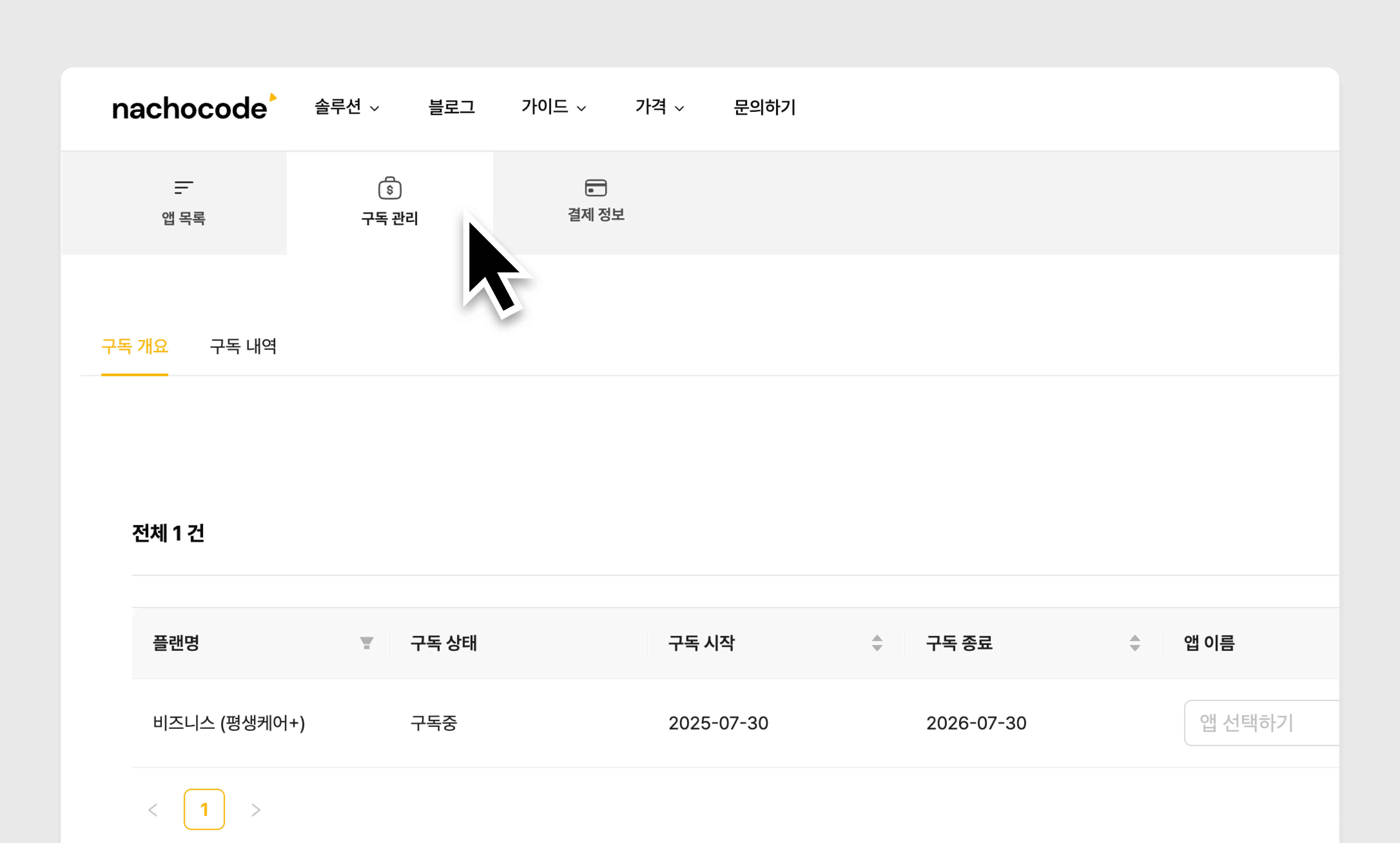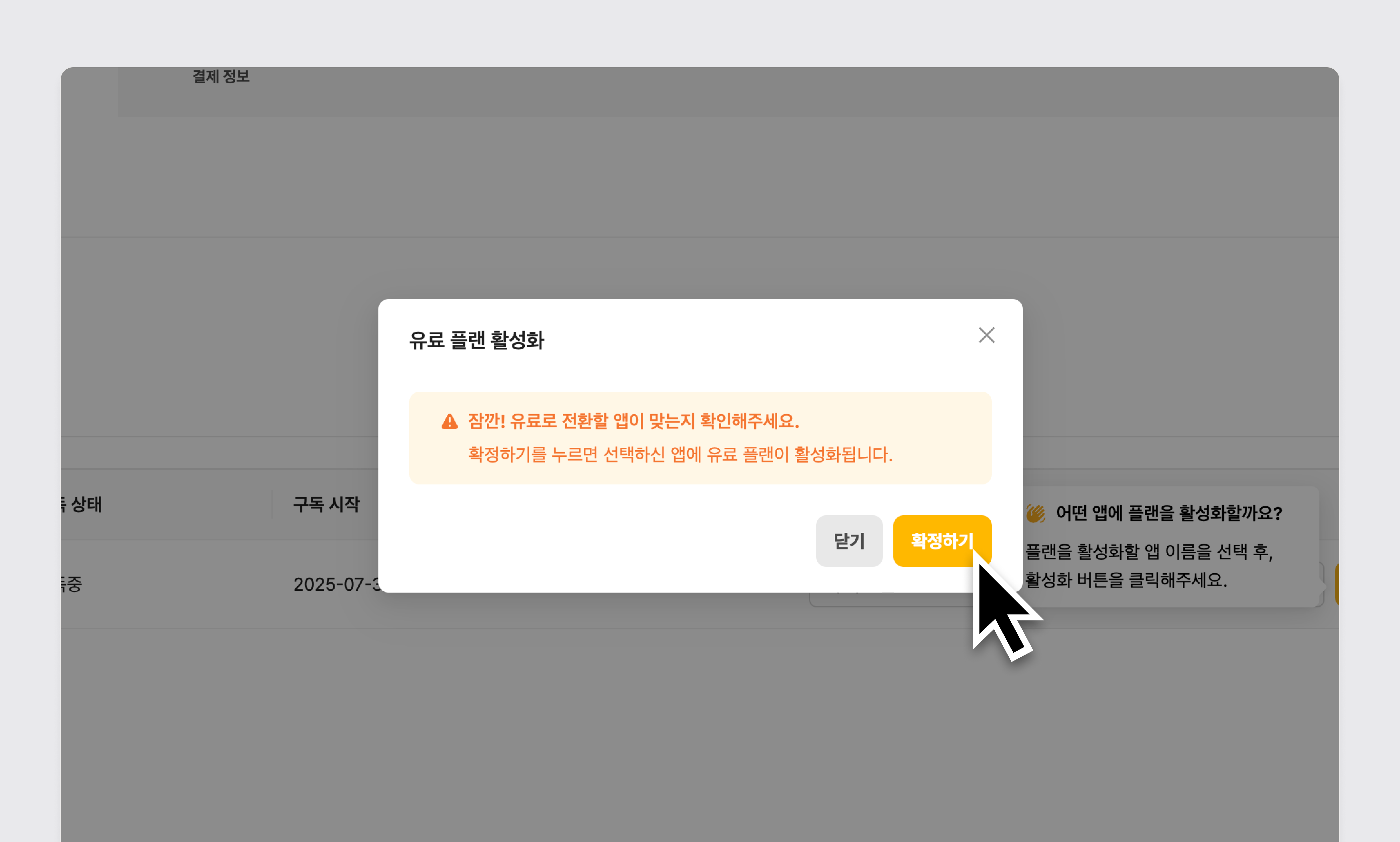 적용된 플랜은 앱 대시보드 > 구독 관리에서도 확인할 수 있습니다.