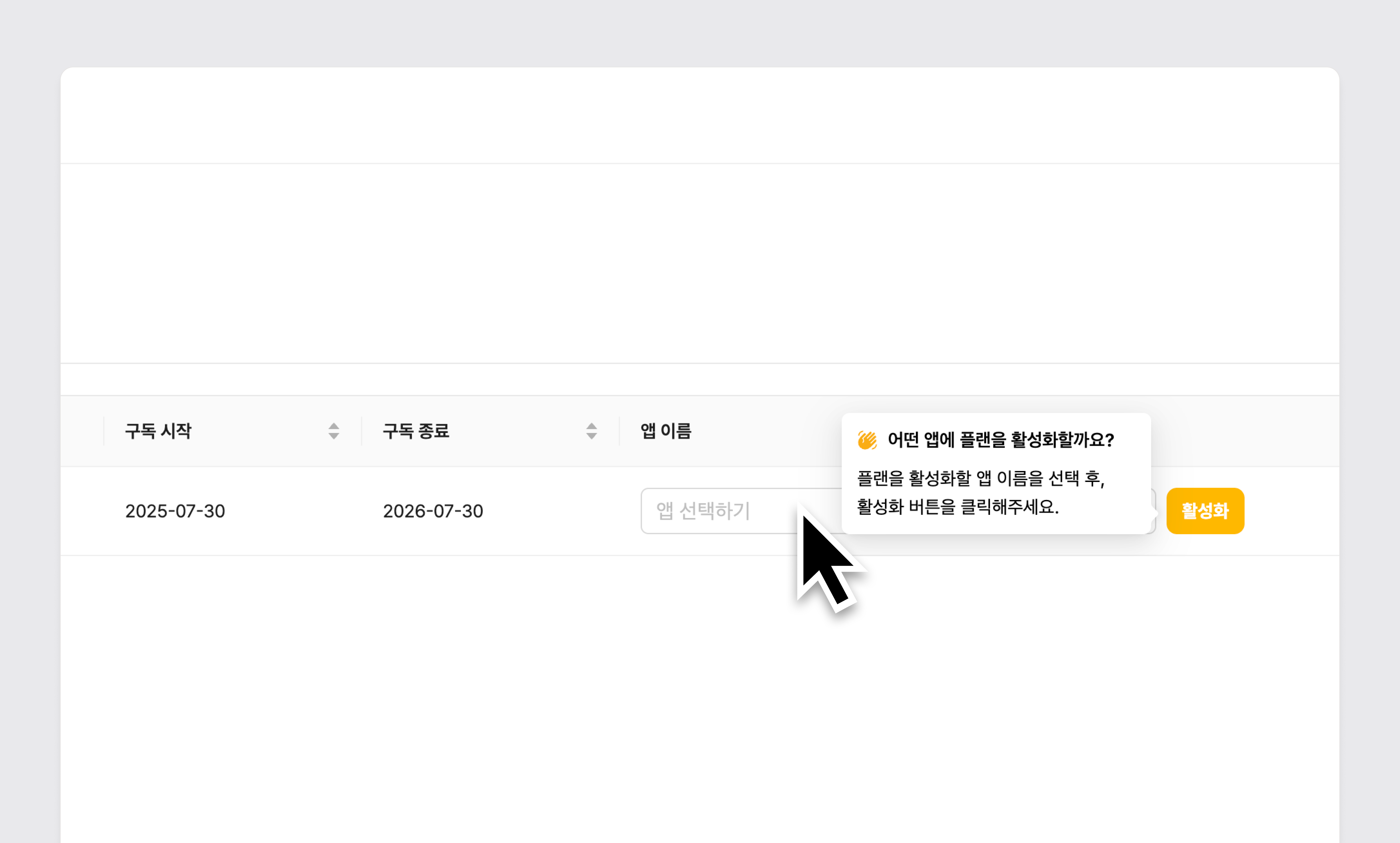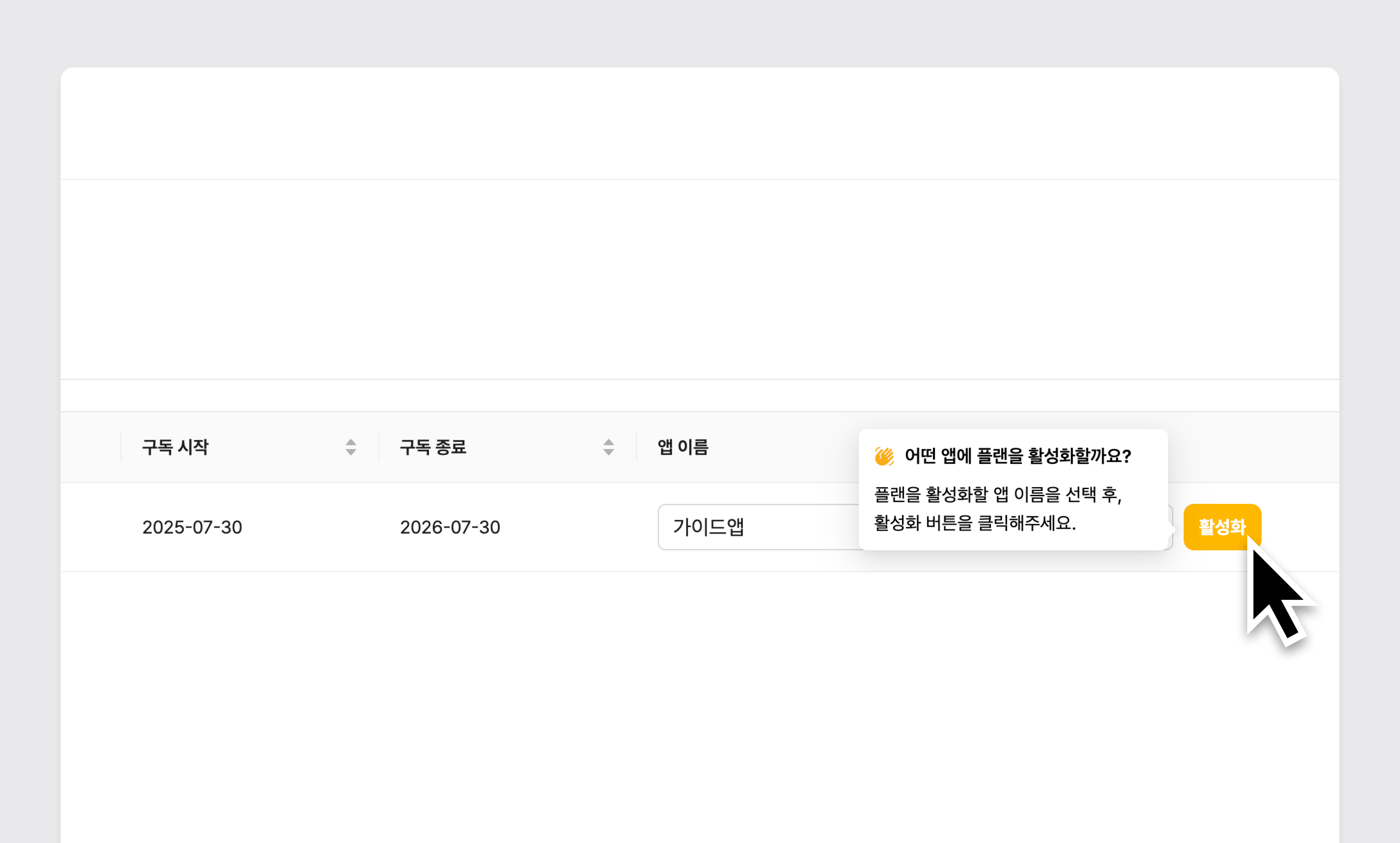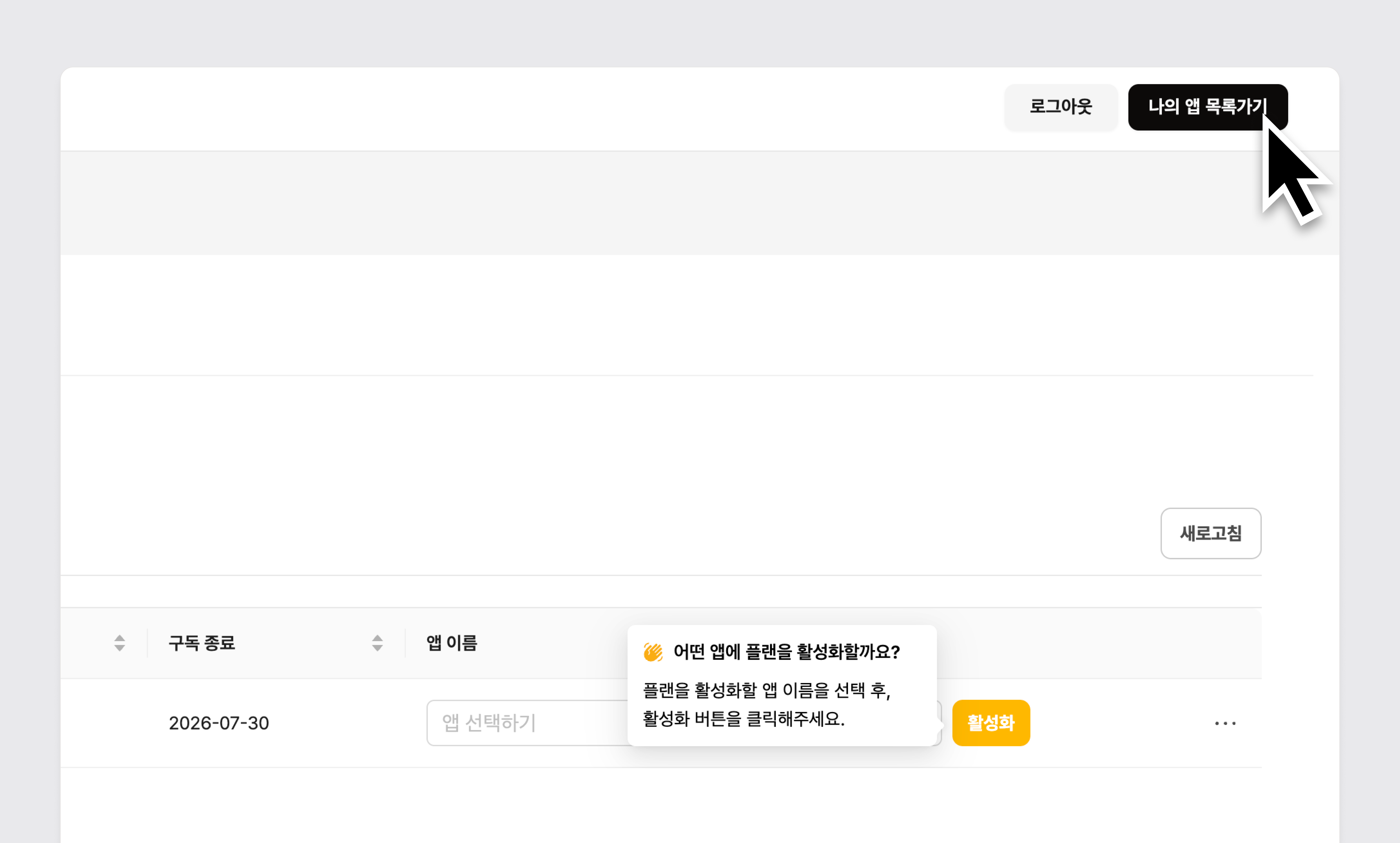 적용된 플랜은 앱 대시보드 > 구독 관리에서도 확인할 수 있습니다.