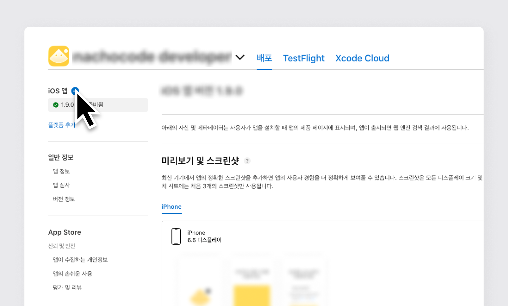 2단계) iOS 앱 [+] 버튼 클릭