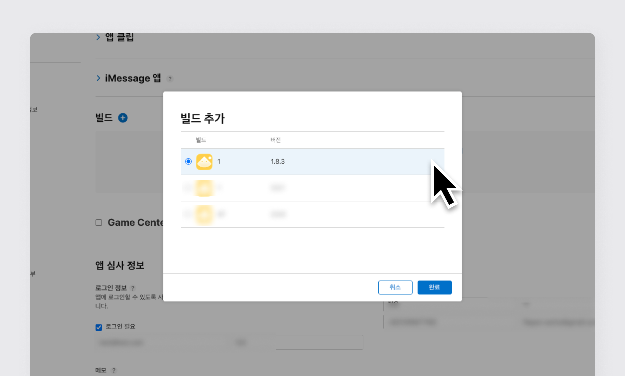 6단계) testflght에 업로드한 앱 클릭 > [완료] 클릭