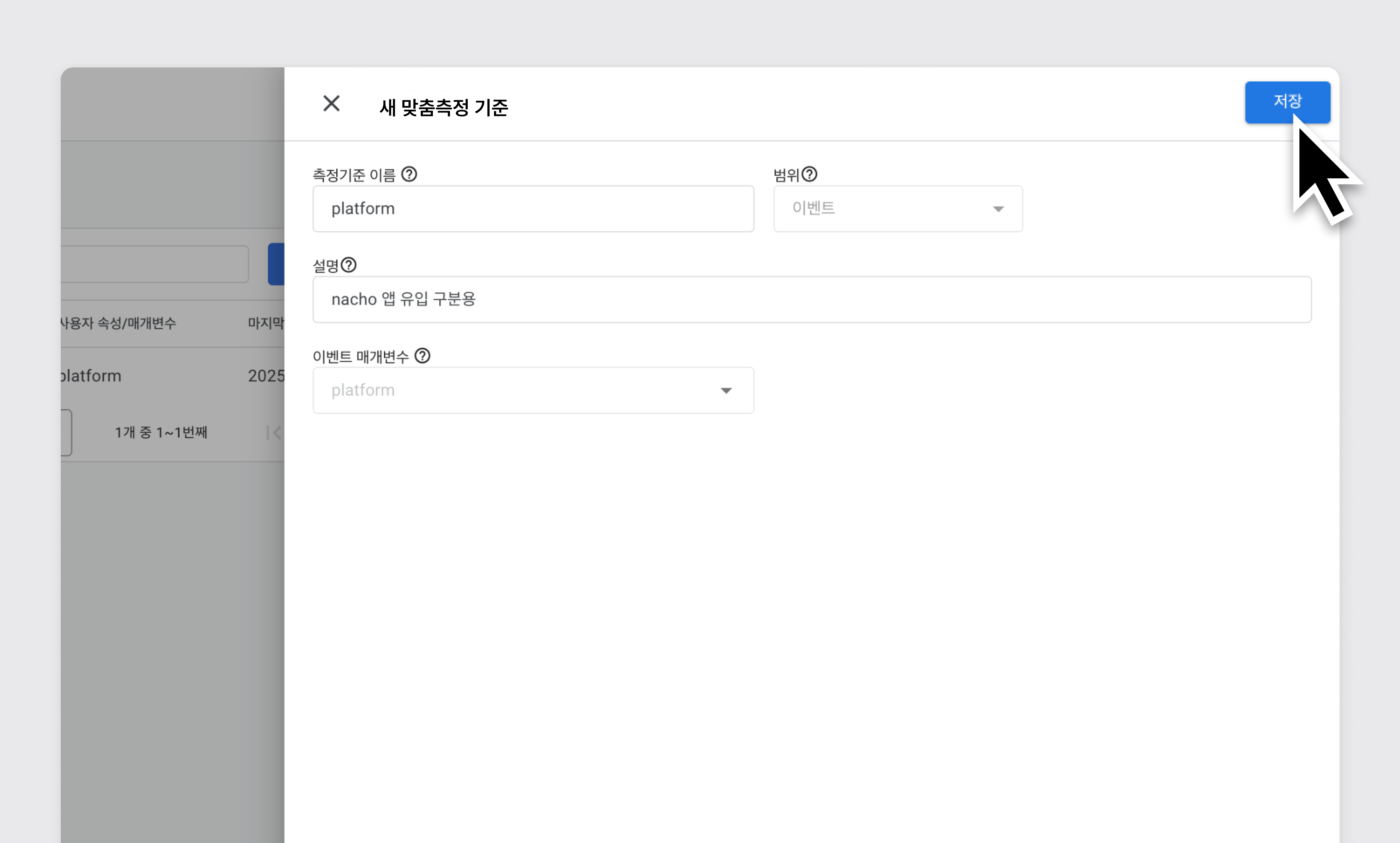 3단계) 새 맞춤측정 기준 만들기 > [저장] 클릭
