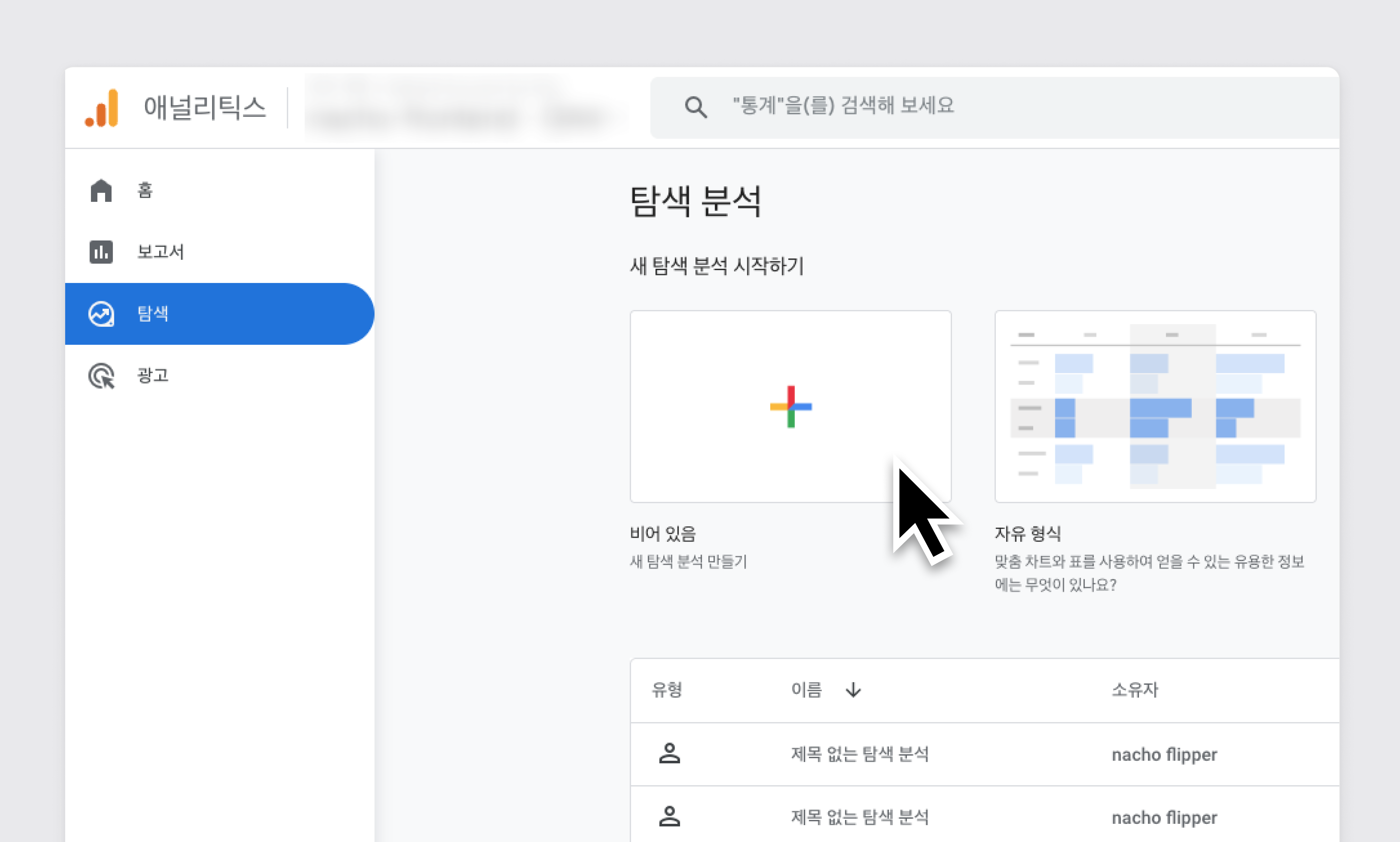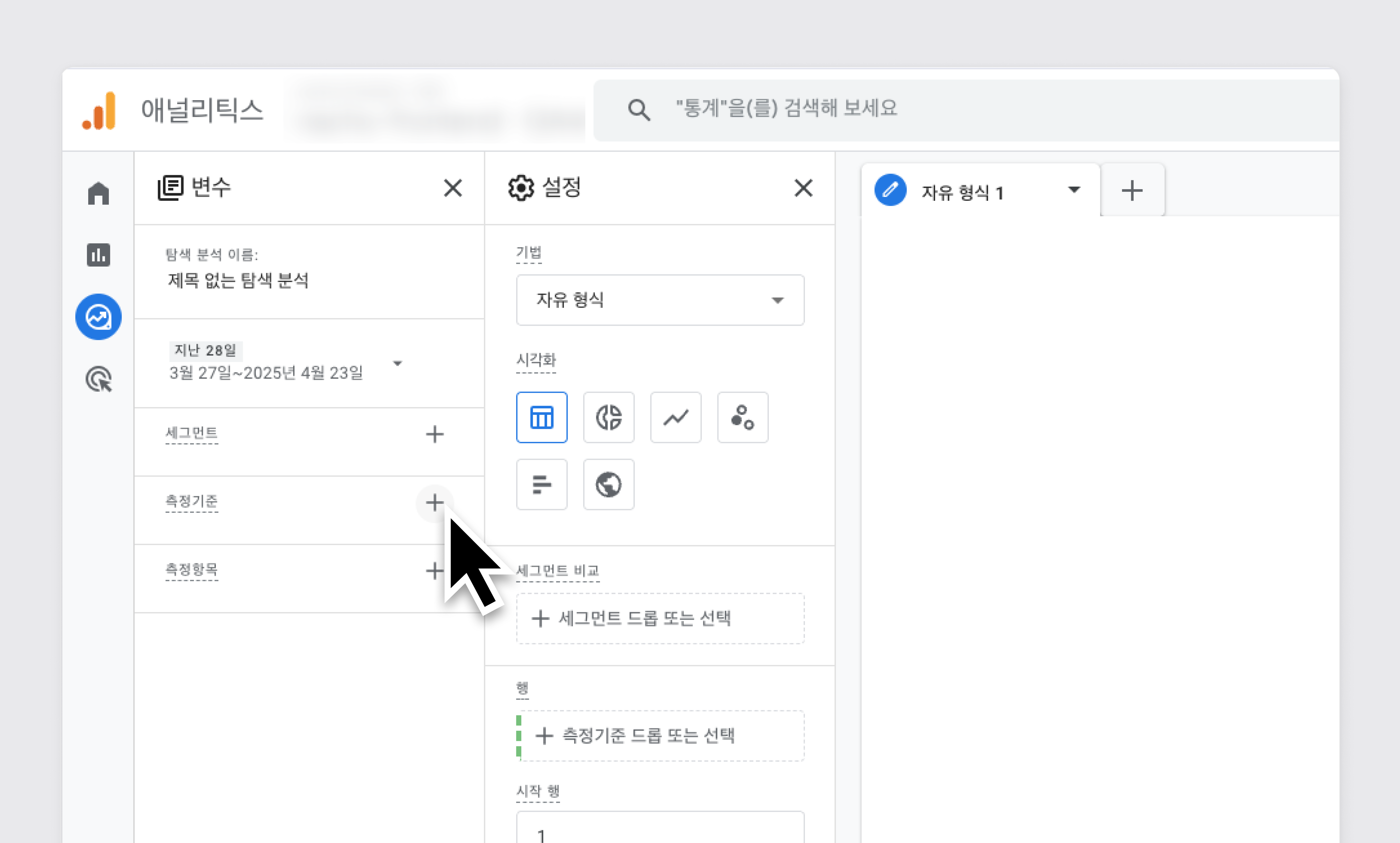 1단계) GA4 > 탐색 > 비어있음 클릭