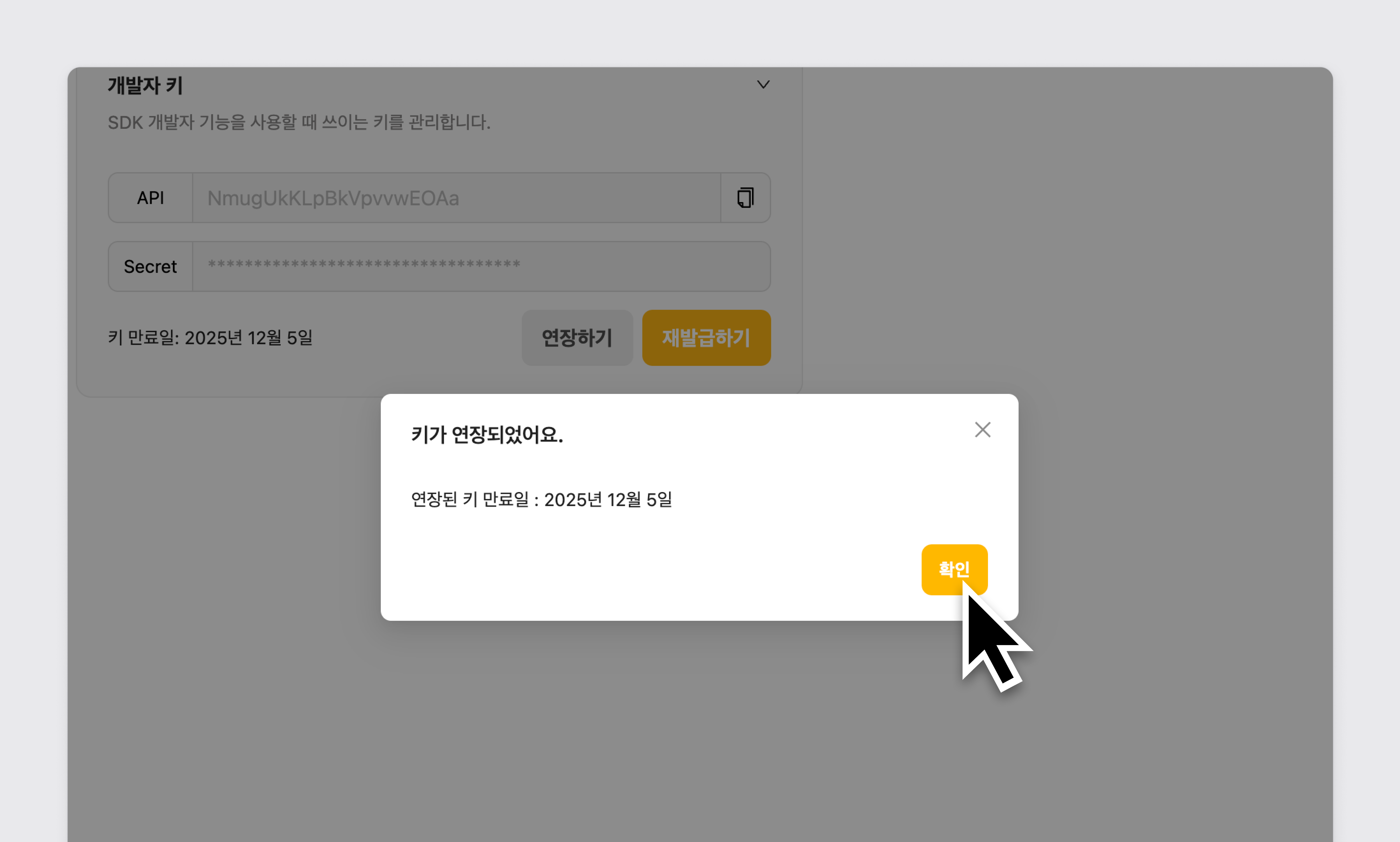 3단계) 키 확인 후 [확인] 버튼 클릭