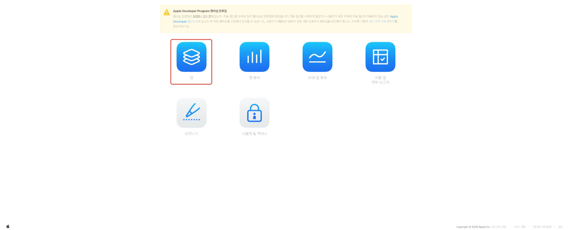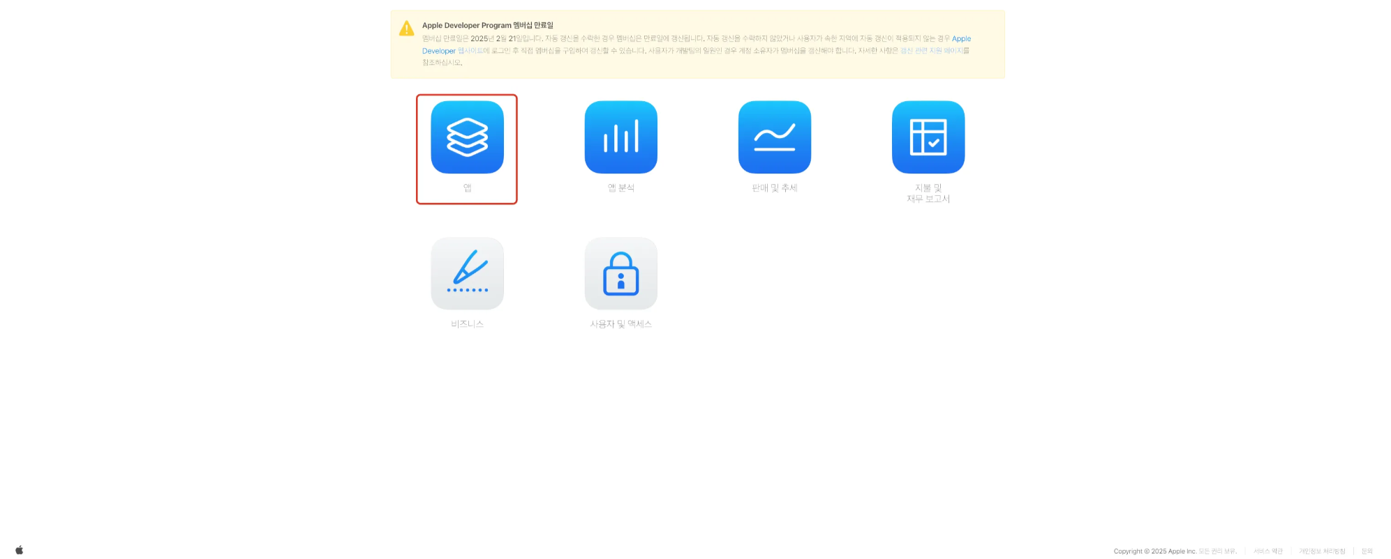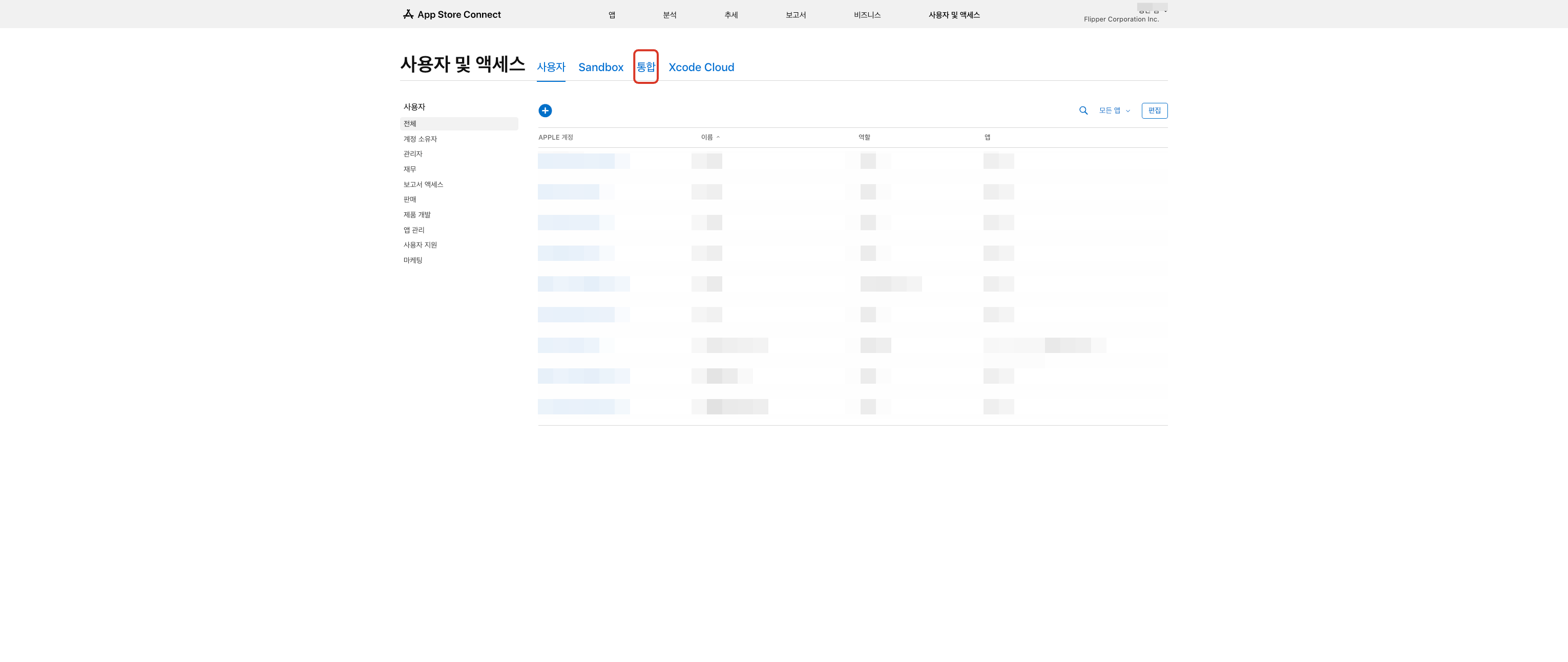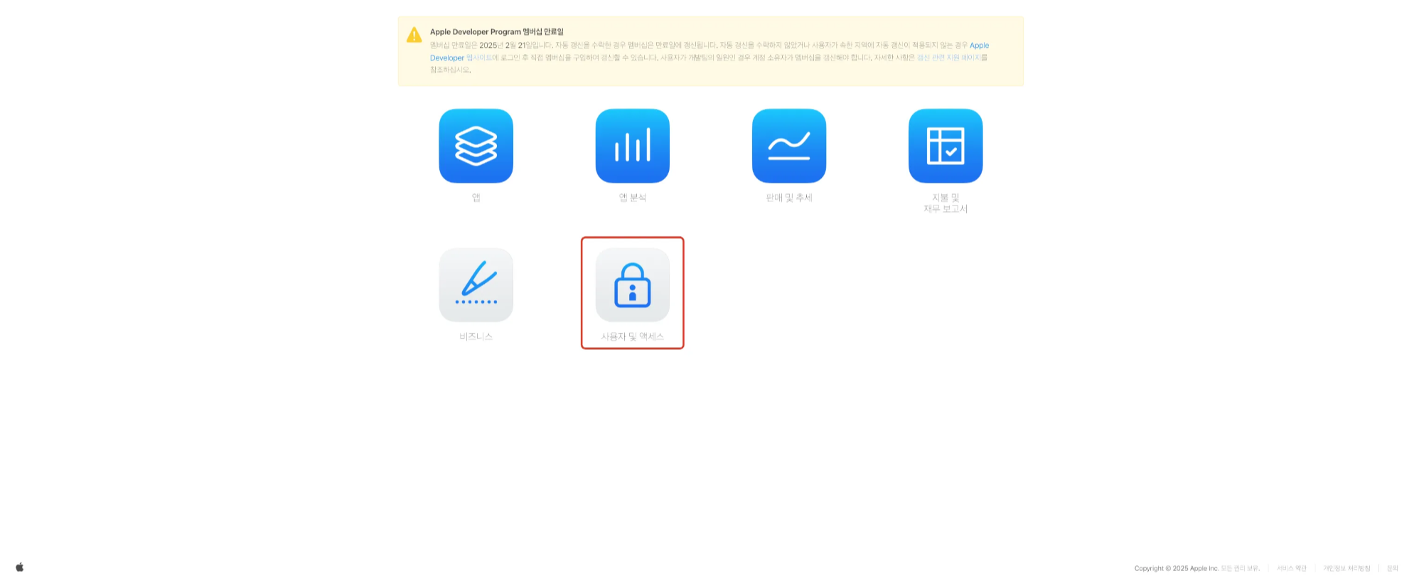 1단계) App Store Connect에 접속 후, [사용자 및 액세스] 버튼 클릭
