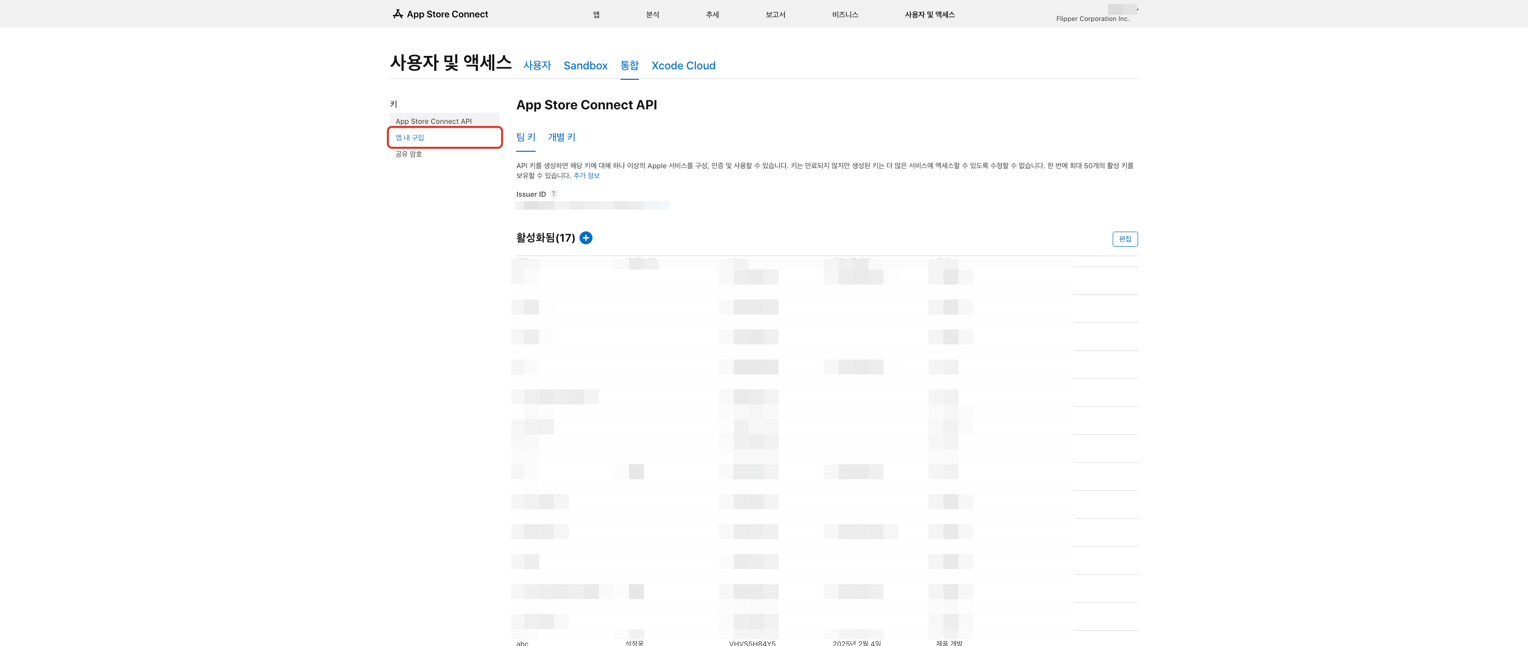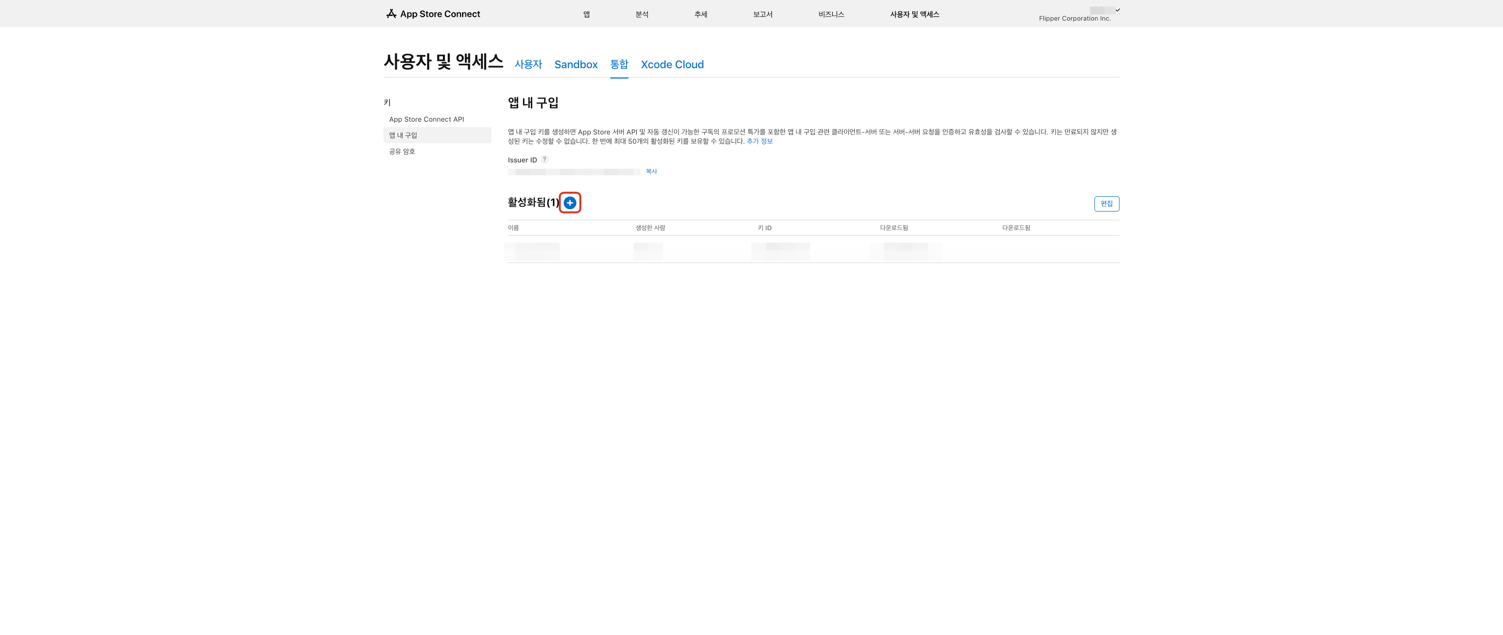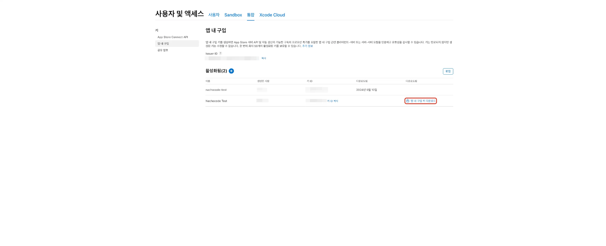 4단계) iOS에서 인앱 결제 사용시 iOS 인앱 결제 설정에 Key ID 입력