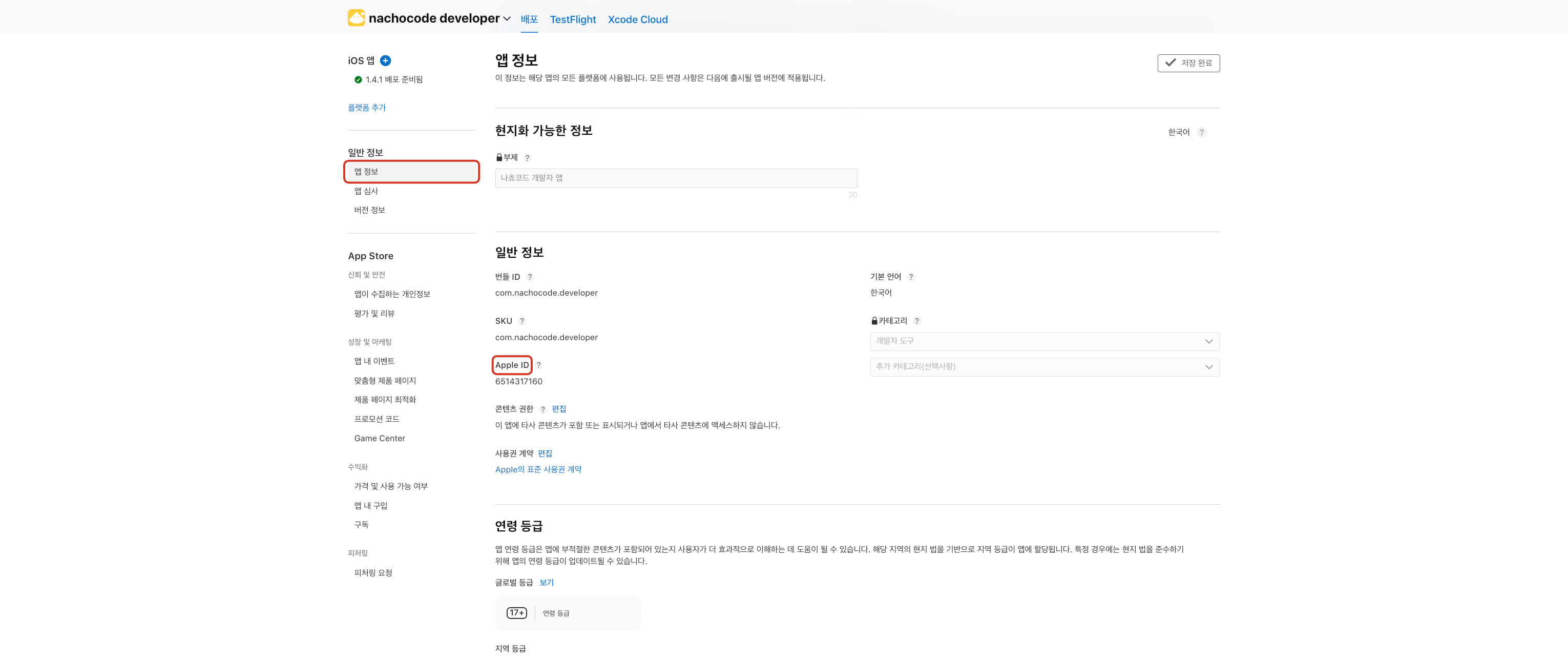 Apple ID는 숫자 형식으로, 앱스토어 커넥트에서 확인 가능합니다.