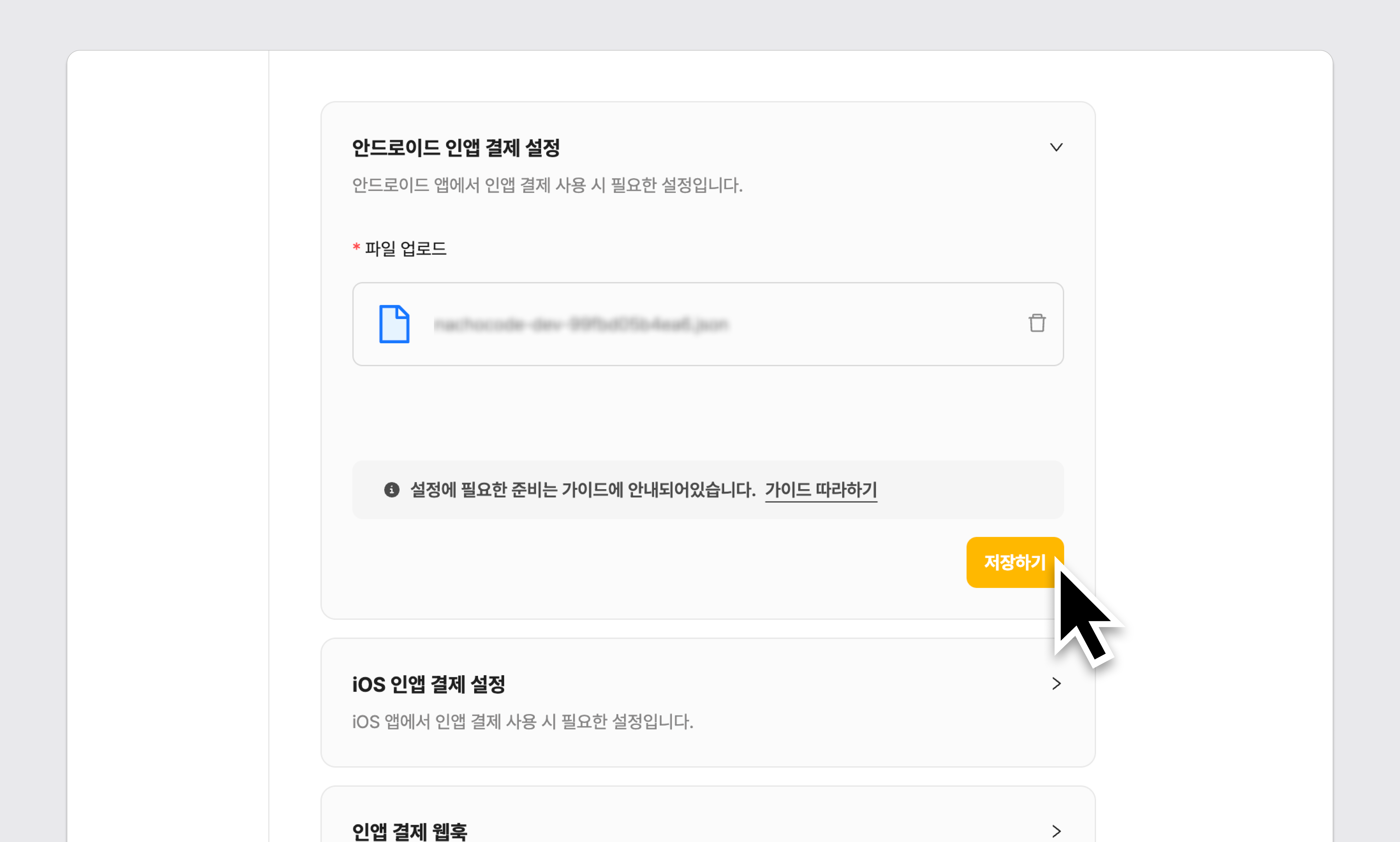 6단계) [앱 내 구입 키 다운로드] 클릭 → 인앱 결제 키 파일 다운로드 완료!