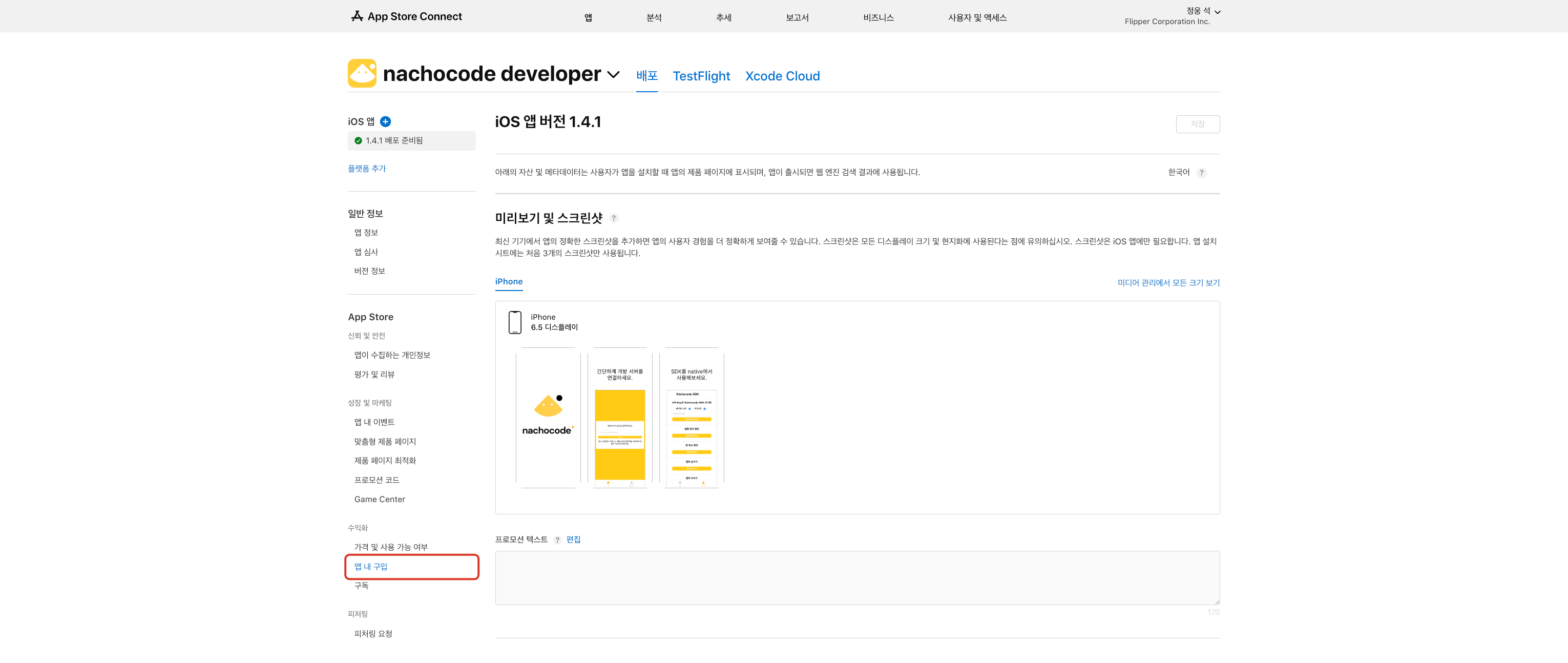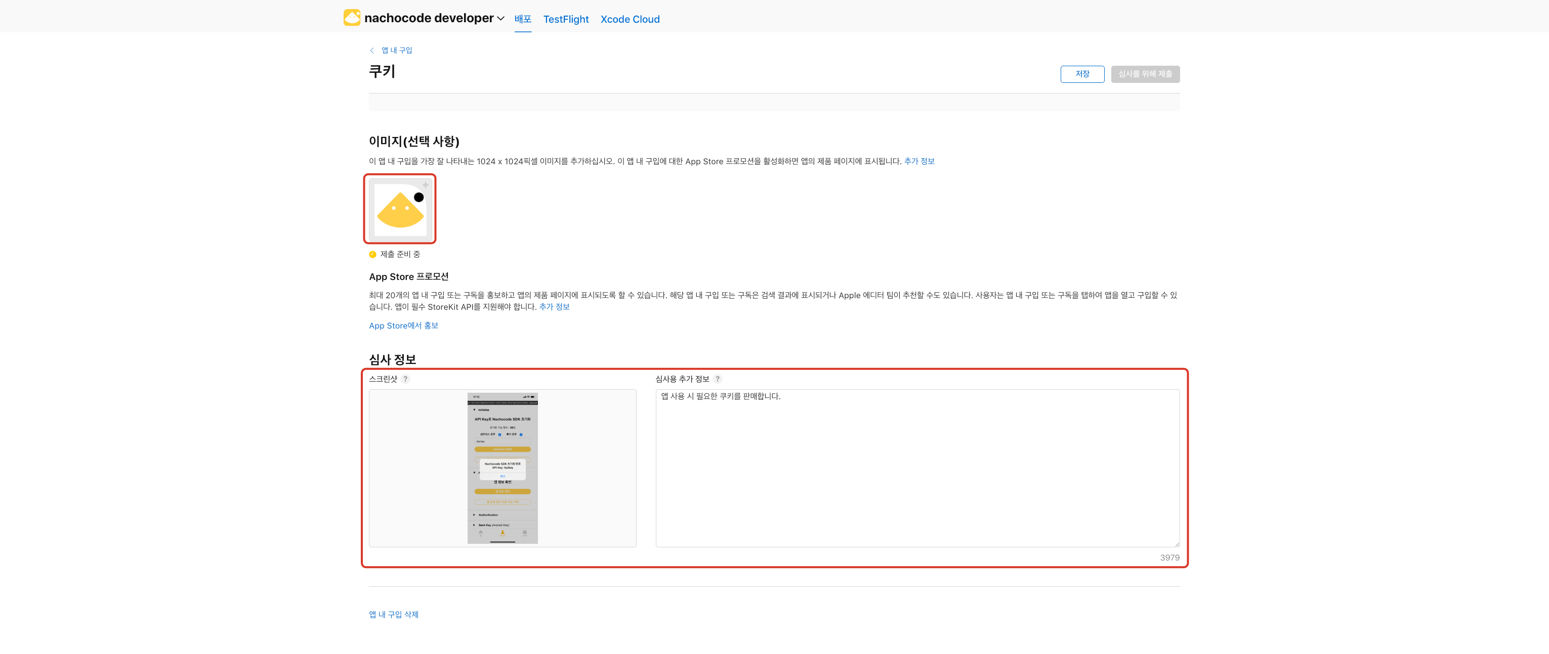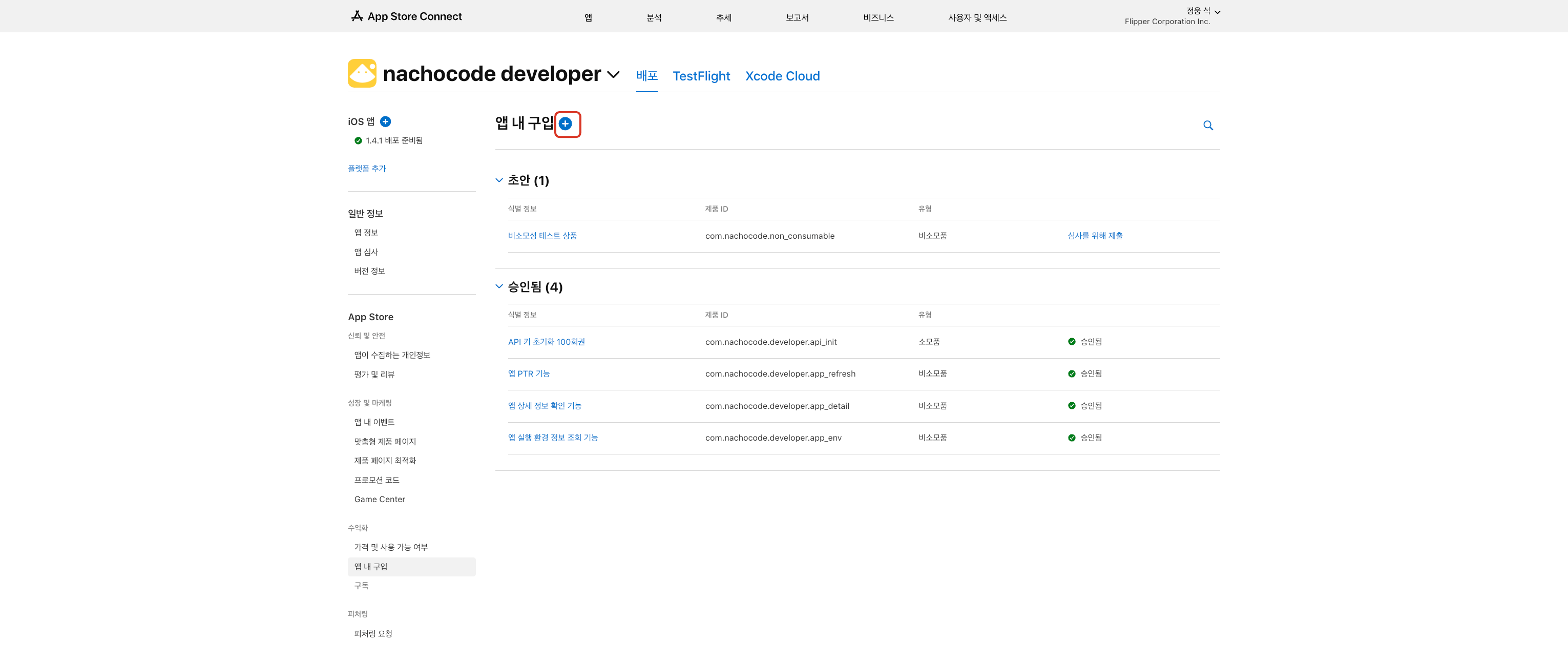 나쵸코드 대시보드에서 iOS 인앱 결제 설정 시 필요한 ID입니다.