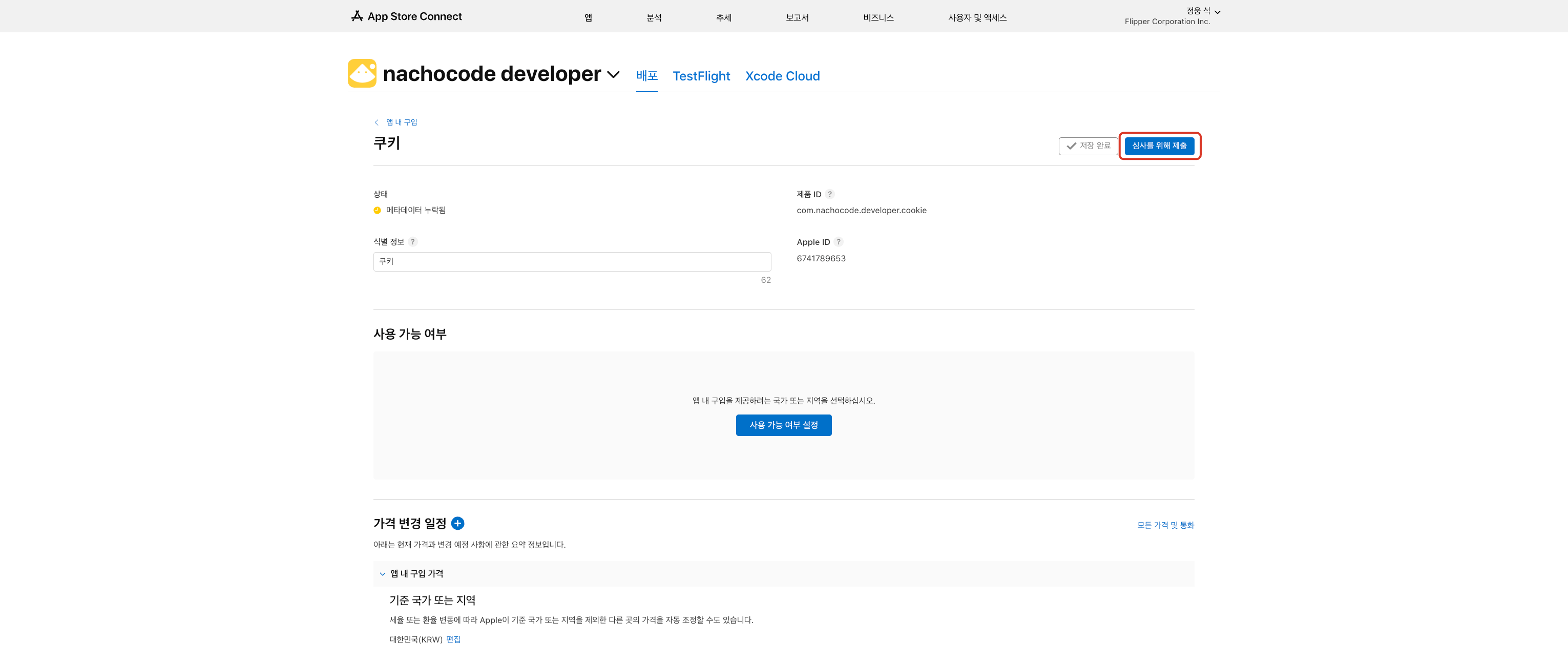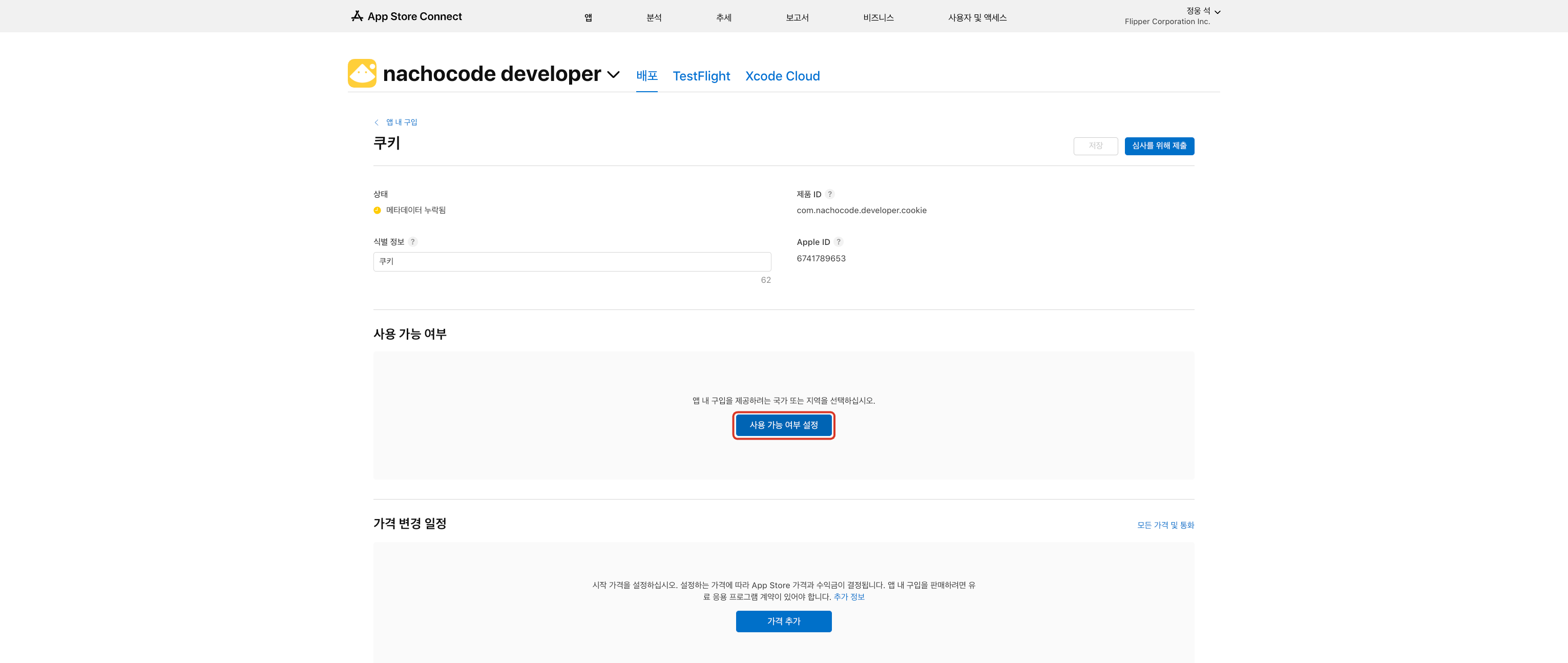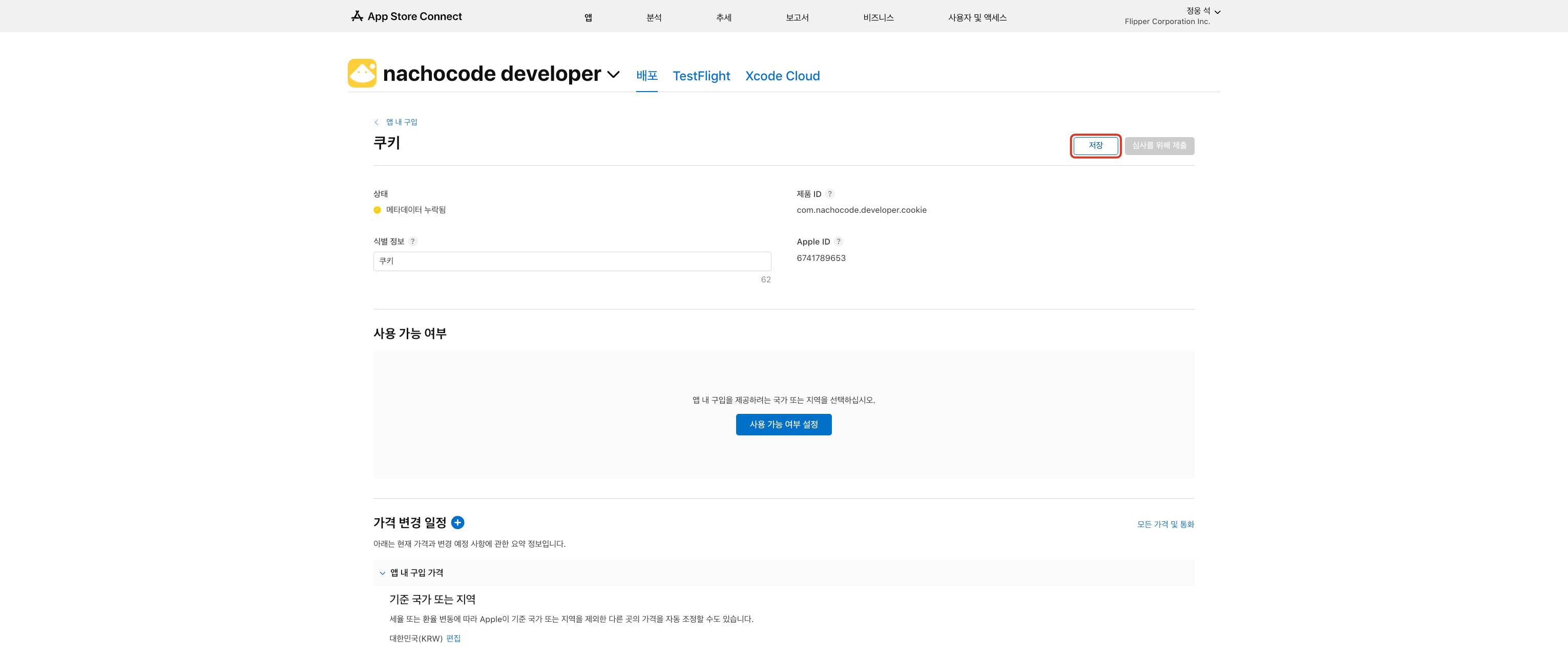 나쵸코드 대시보드에서 iOS 인앱 결제 설정 시 필요한 ID입니다.