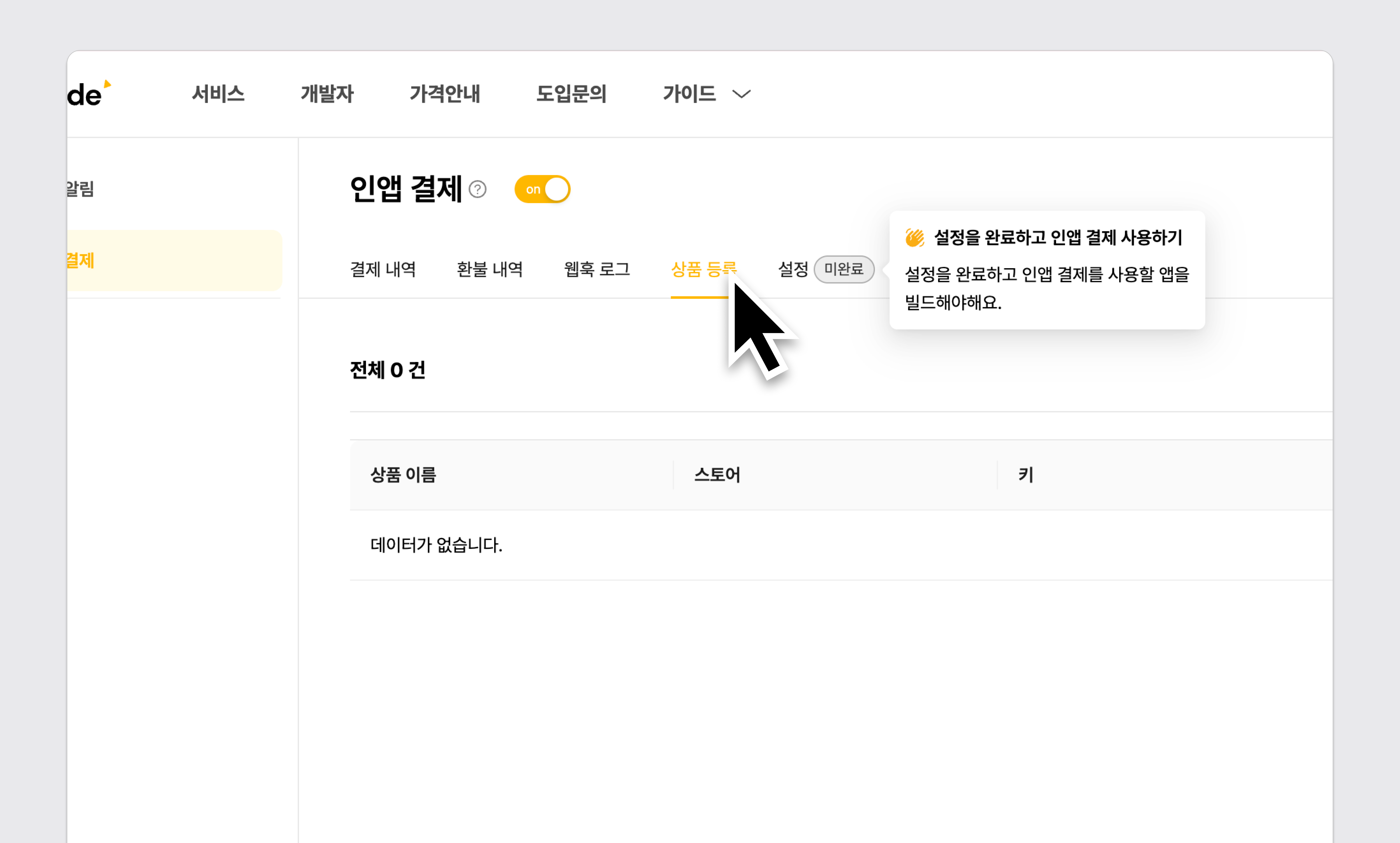 인앱 결제를 사용하려면 상품을 등록하고 나쵸코드 프로덕트 키 SDK를 등록해야해요.