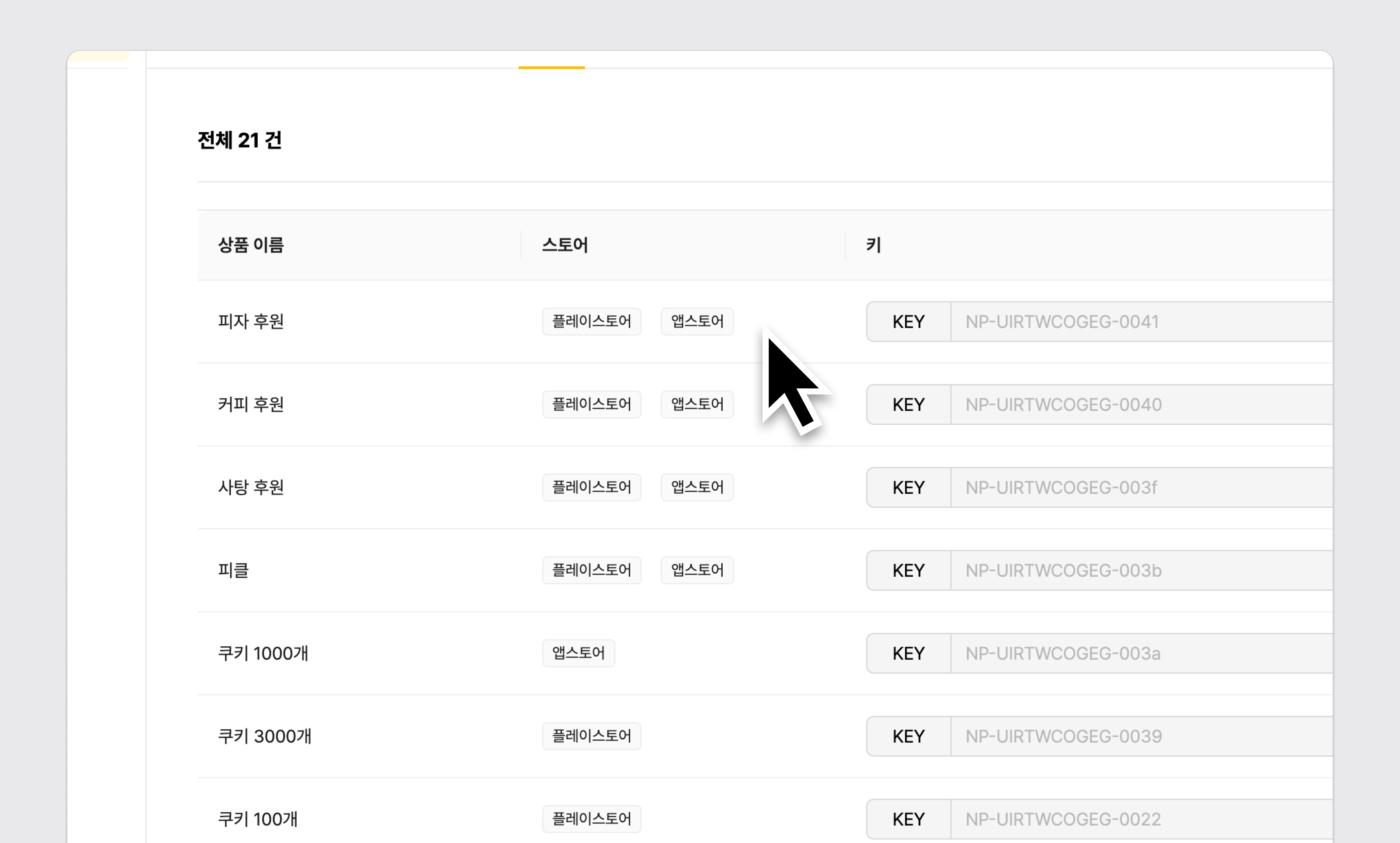 플레이스토어와 앱 스토어 상품은 따로 또는 한 번에 등록해 관리할 수 있어요.