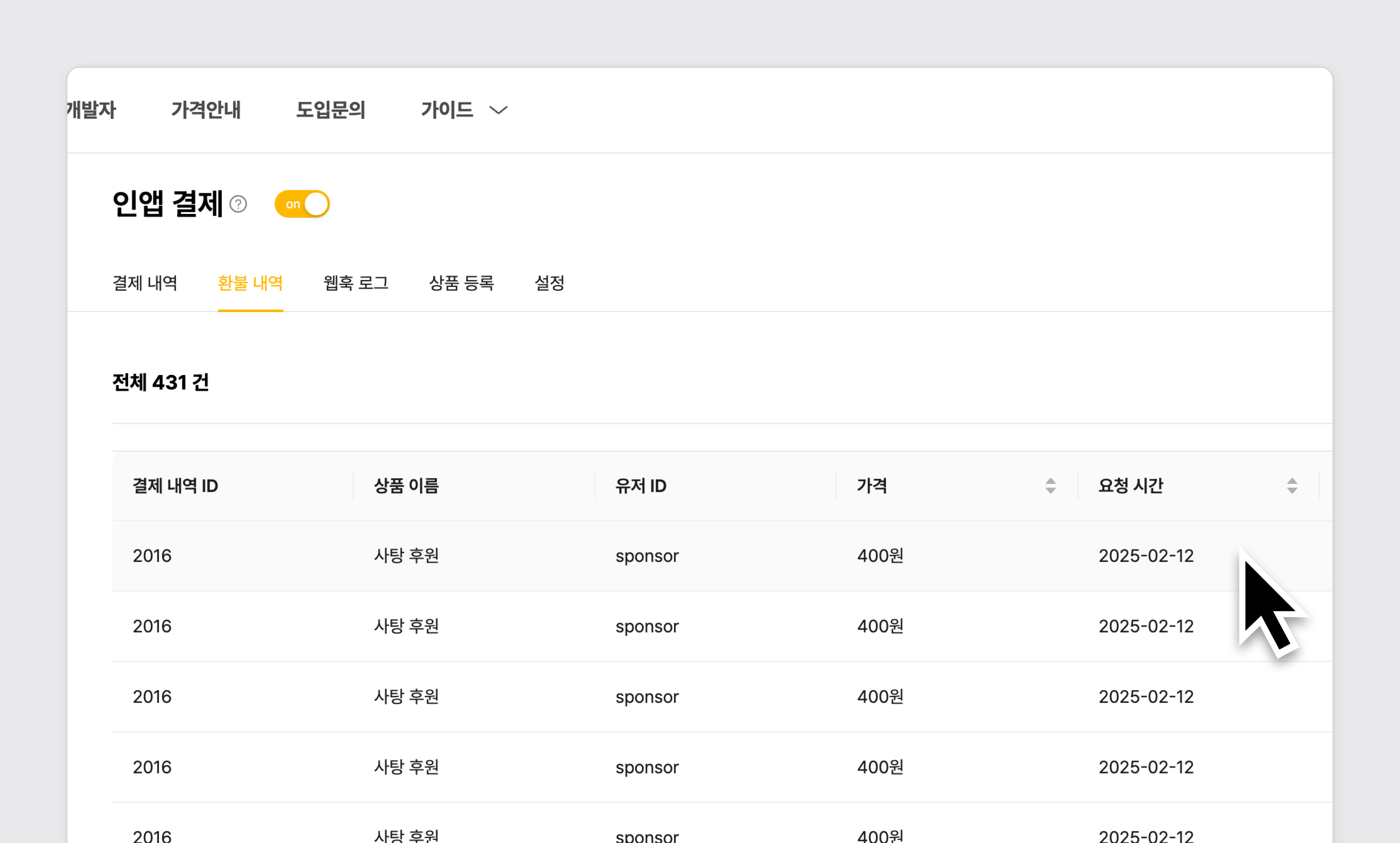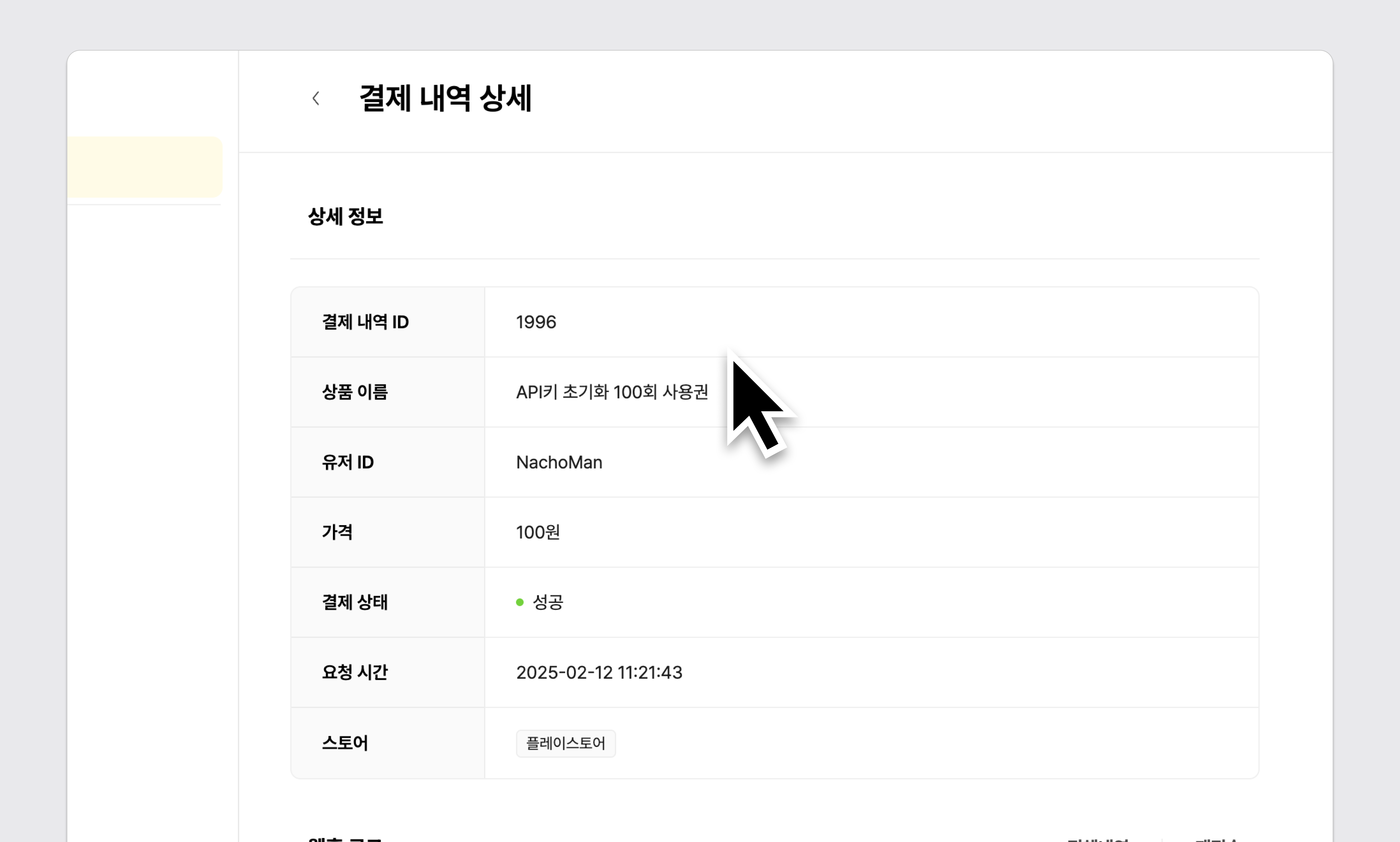 이탈한 결제 내역은 상세 내용을 확인할 수 있습니다.