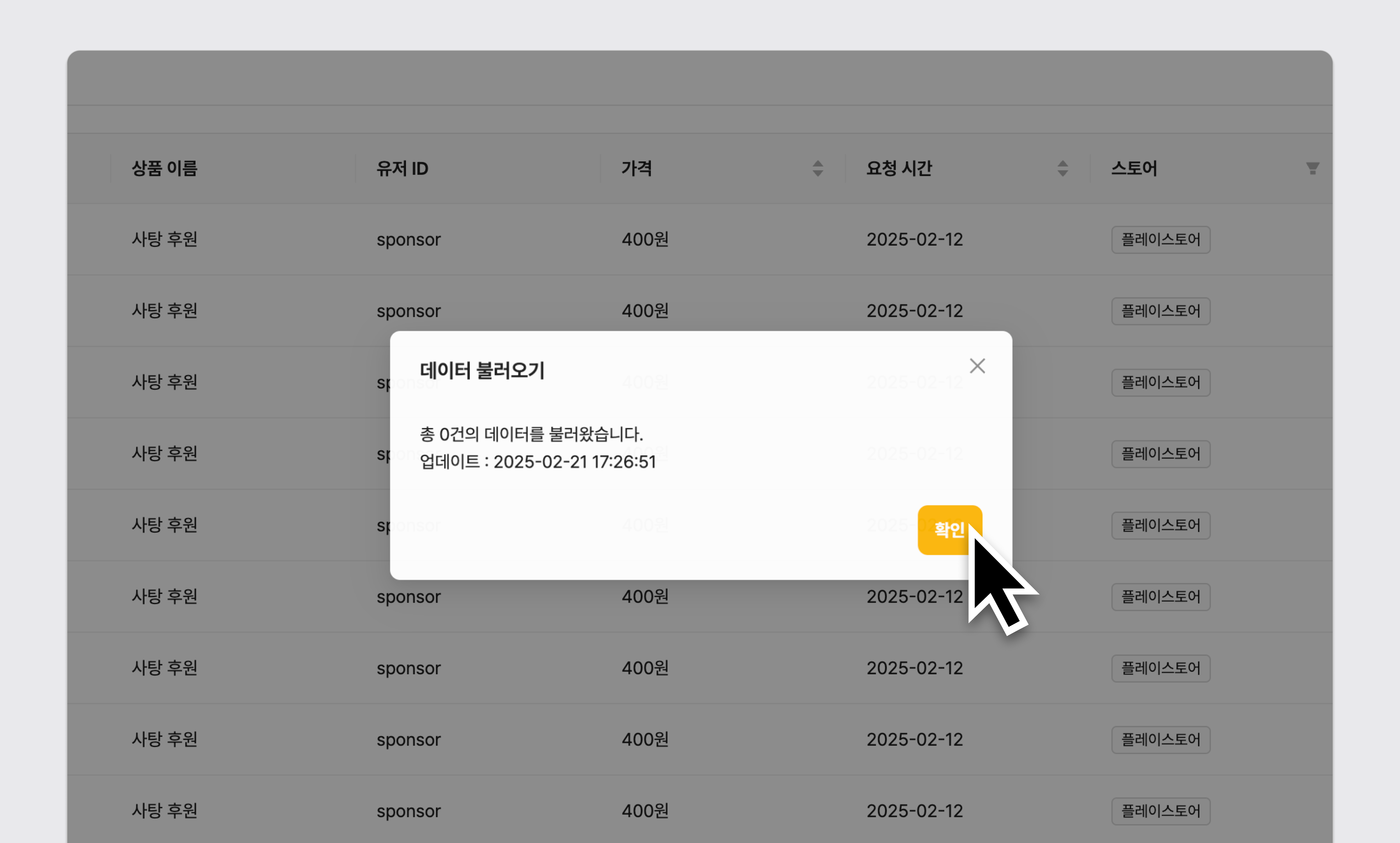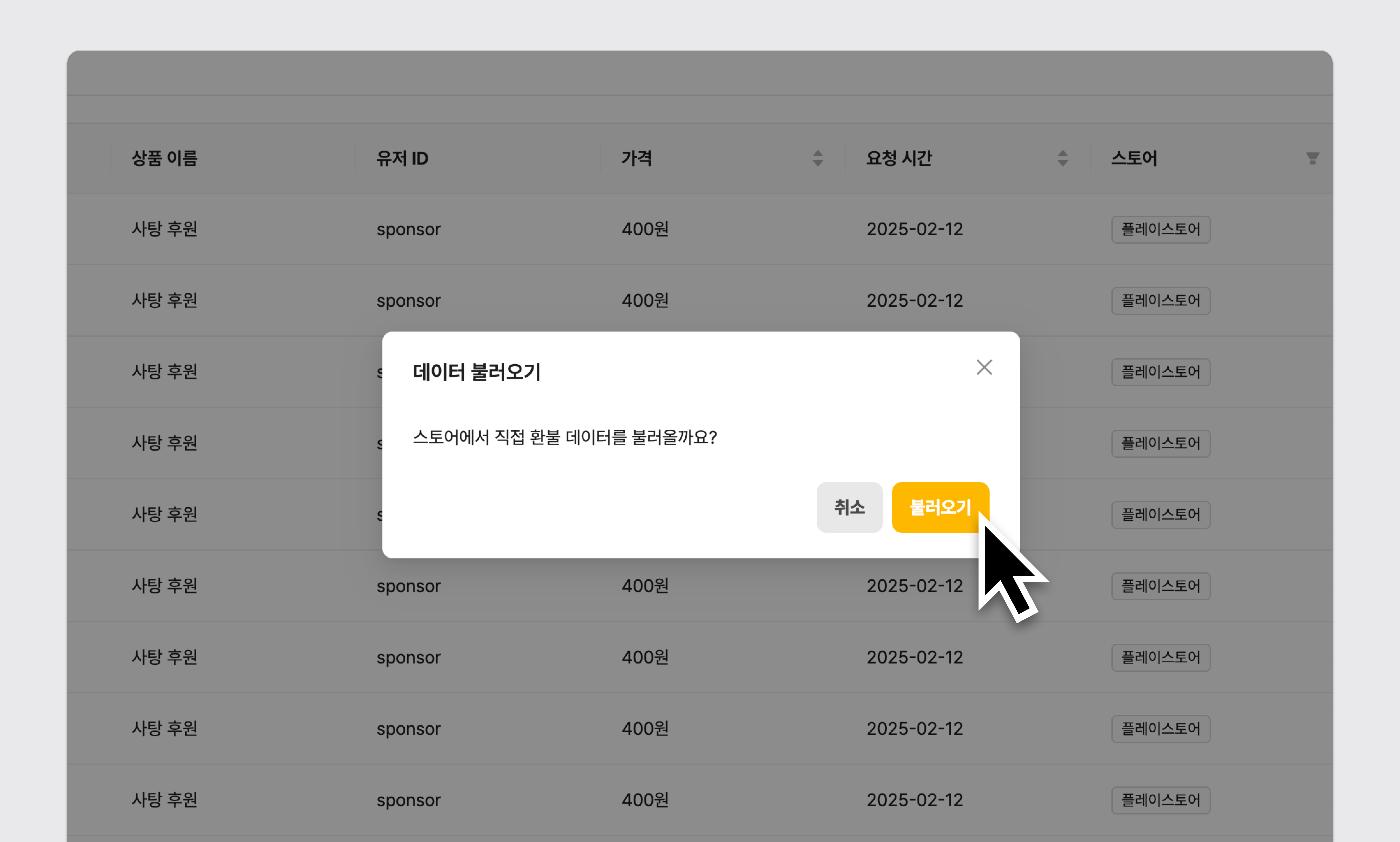환불 내역은 스토어에서 받아오는 데이터로, 자동으로 갱신되지 않습니다. 반드시 데이터를 갱신해주세요.