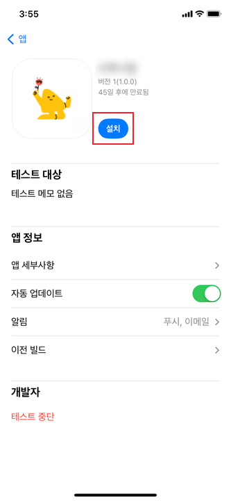 2. 링크로 접속하면 "TestFlight"에 등록한 앱을 설치할 수 있습니다.