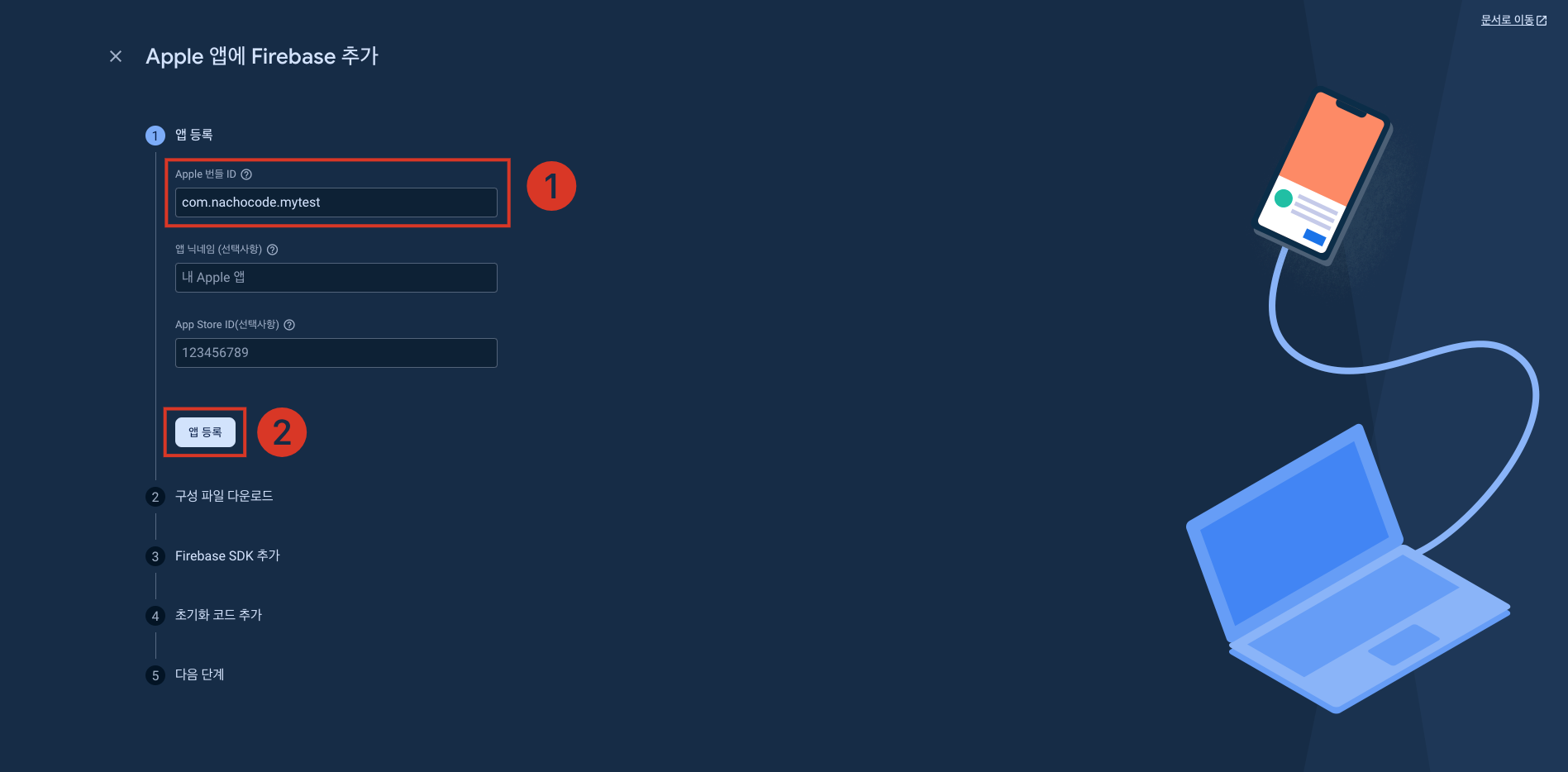 4단계) 앱 등록에 Apple 번들 ID 입력 후 [앱 등록] 버튼 클릭