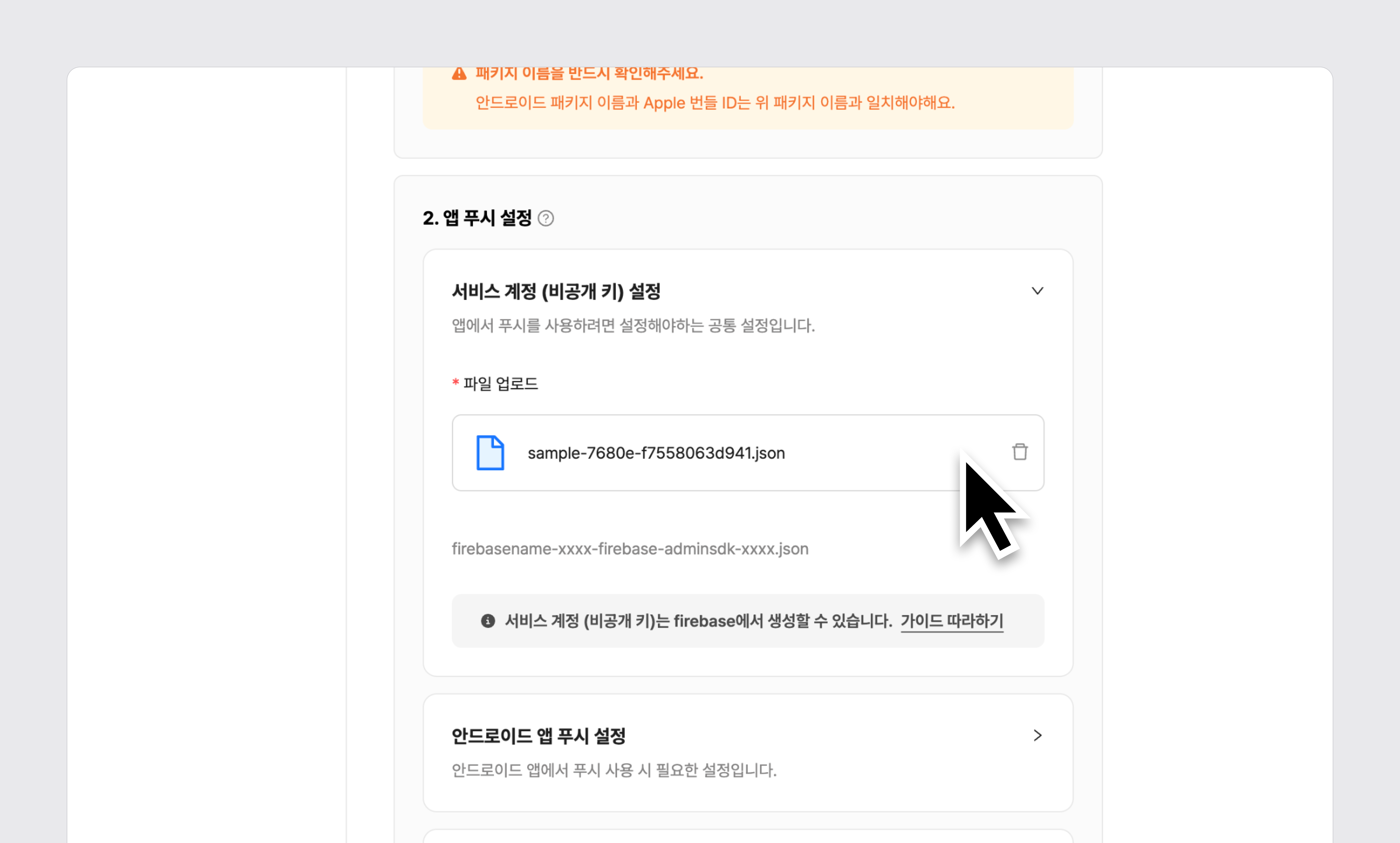 5단계) 안드로이드 앱 푸시 설정에 파일 업로드