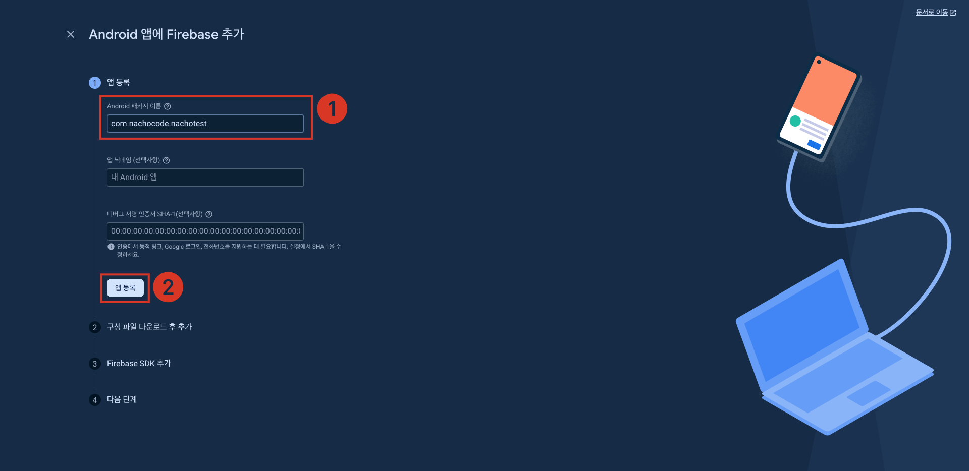 반드시 위에서 생성한 firebase 프로젝트에서 안드로이드 앱 생성을 진행해주세요.