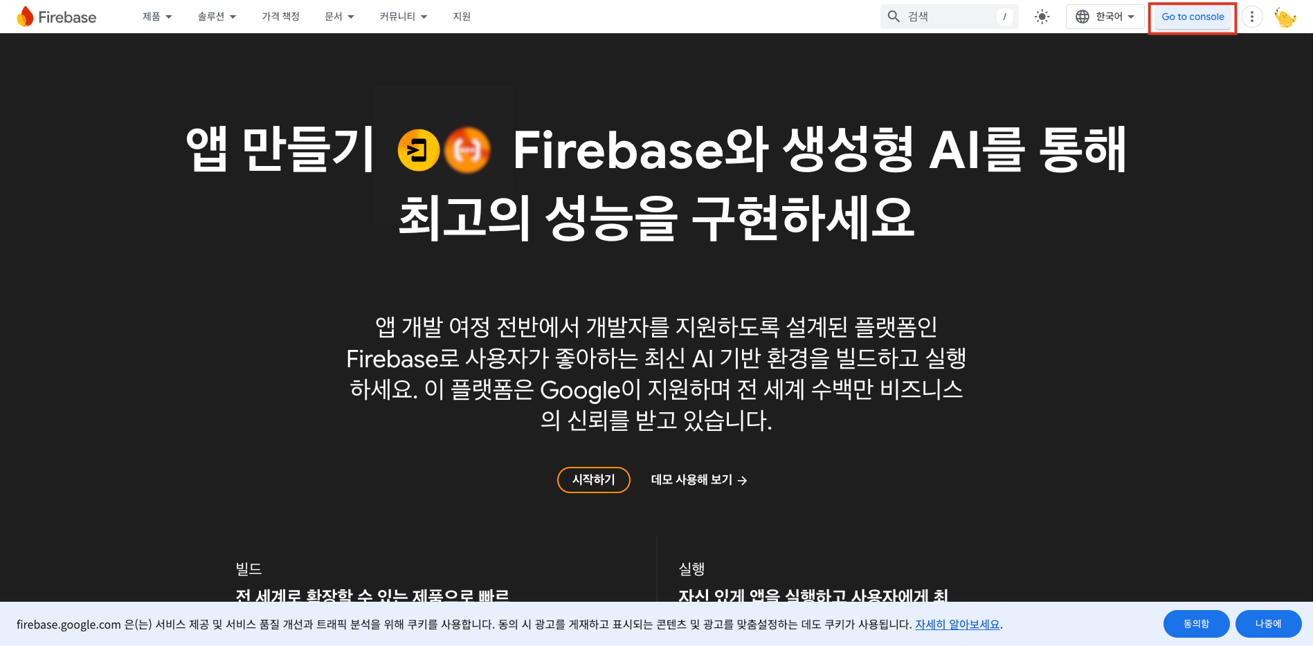 1단계) firebase.google.com에 접속 후, [Go to console] 버튼 클릭