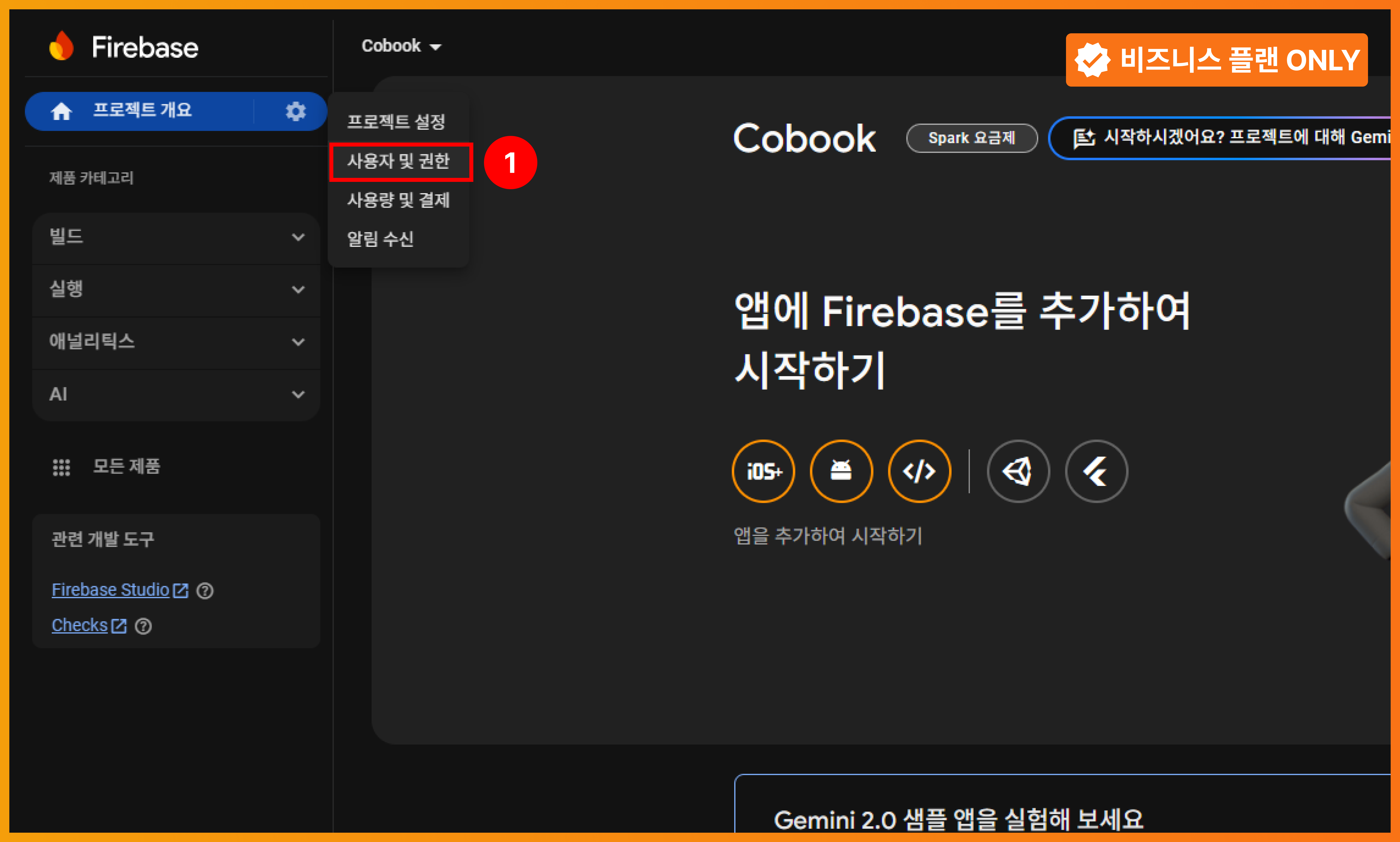 6단계) 비즈니스 플랜 ONLY 프로젝트 개요 > 사용자 및 권한 클릭